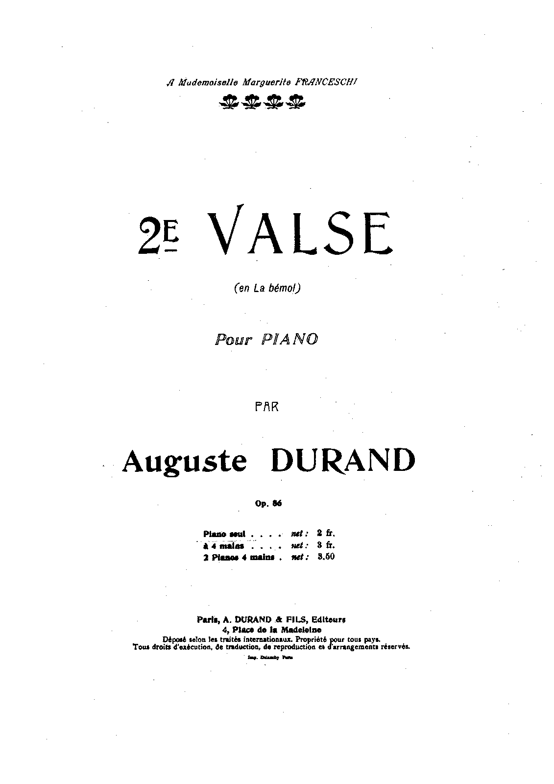 Paris: A. Durand & Fils, n.d.(1899). Plate D. & F. 5535.