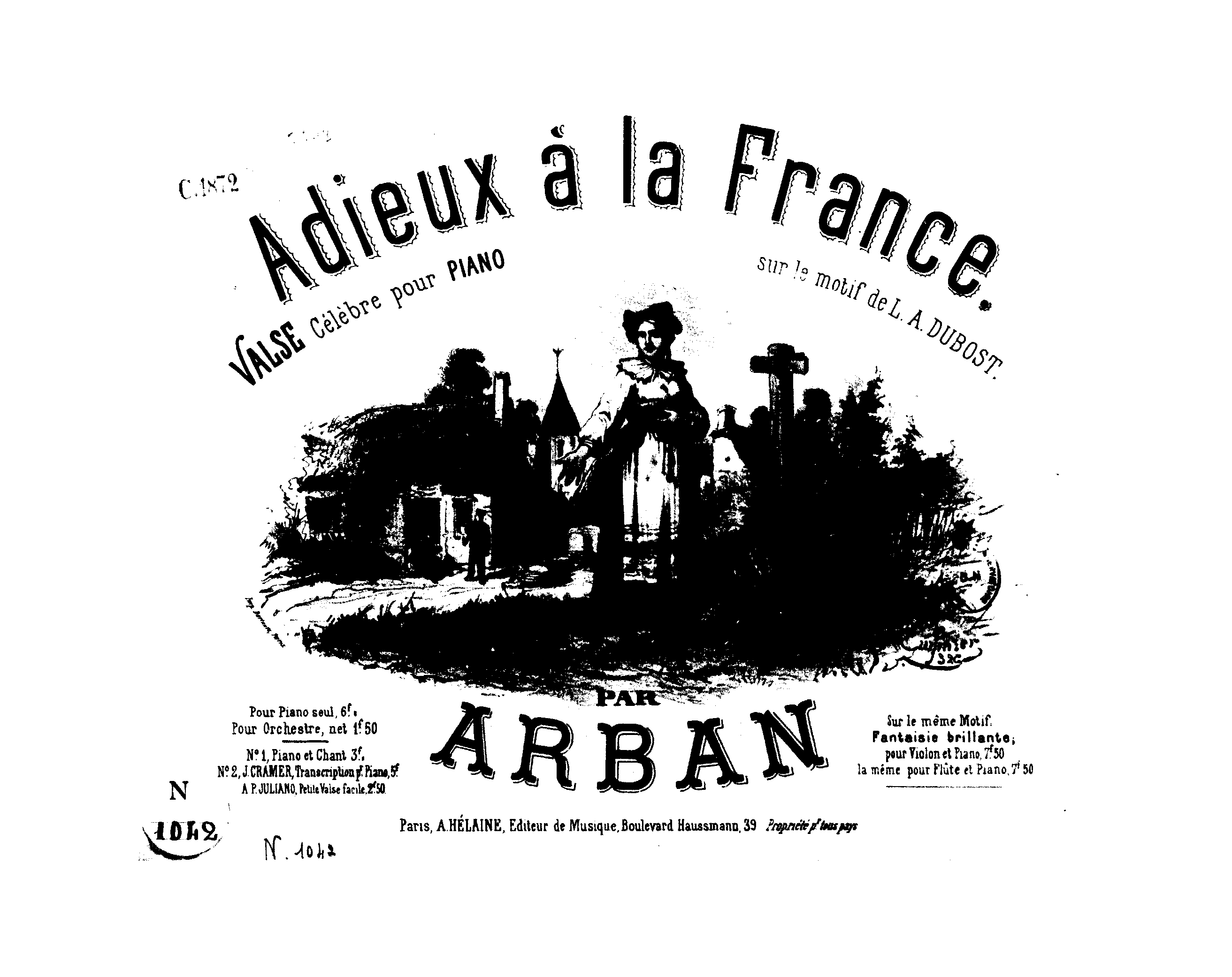| Alternative. Title | Adieux à la France. Valse sur le motif de L. A. Dubost. |