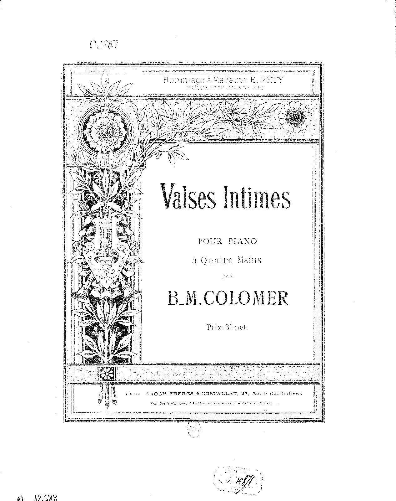 | Dedication | Hommage à Madame E. Réty (Émilie-Charlotte Réty, 1828–1907), professeur au Conservatoire |