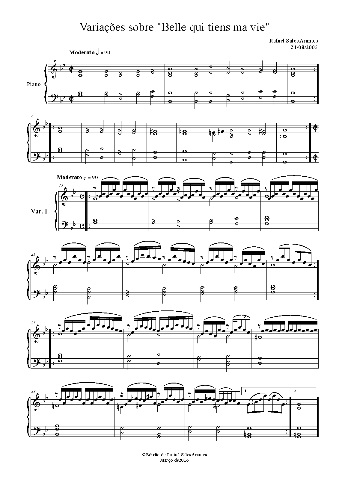 | Work Title | Variações sobre Belle qui tiens ma vie |