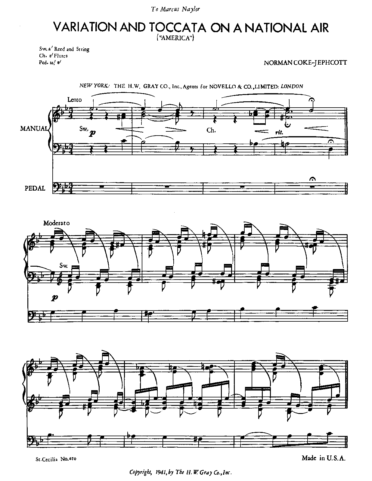 | Work Title | Variation and Toccata on a National Air ('America') |