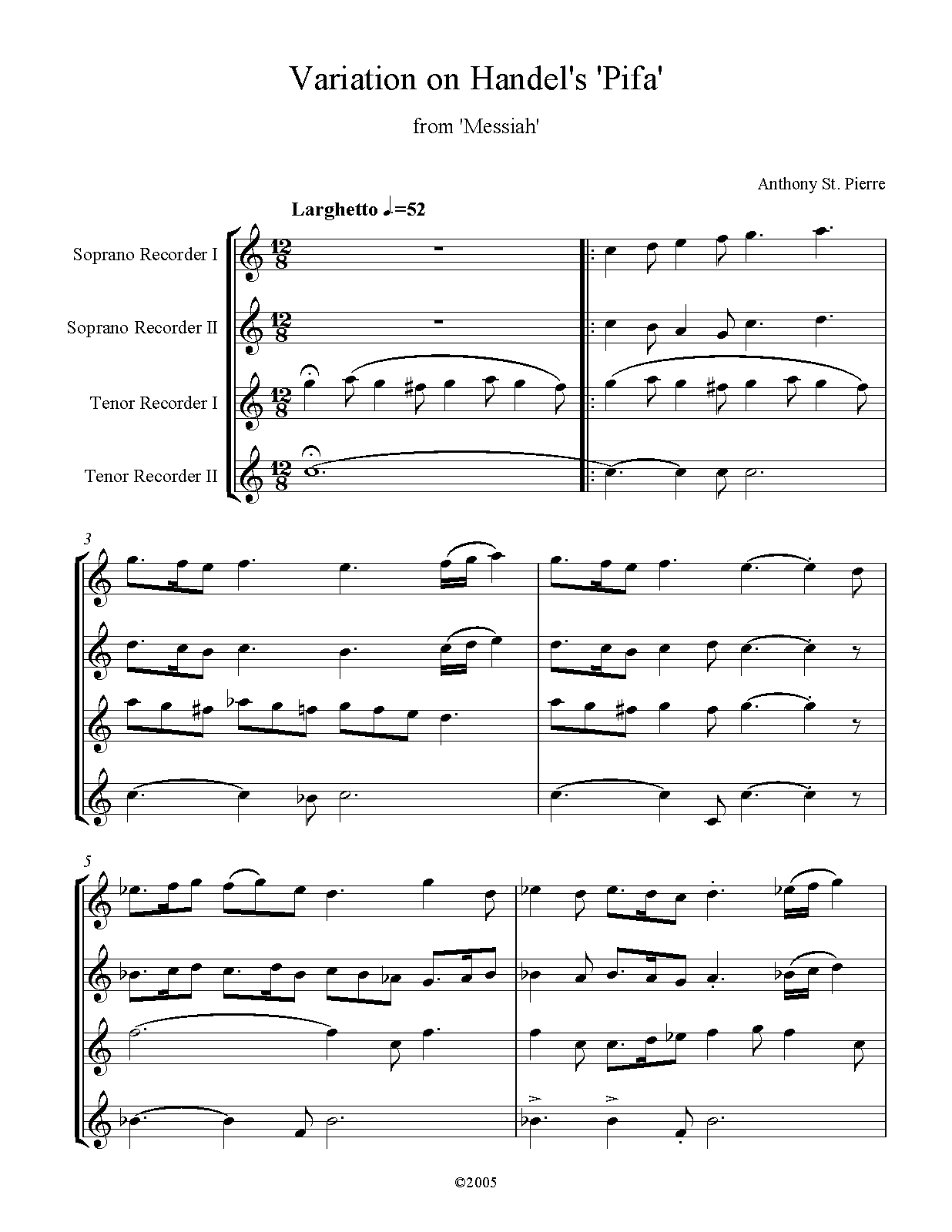 | Work Title | Variation on Handel's 'Pifa' |