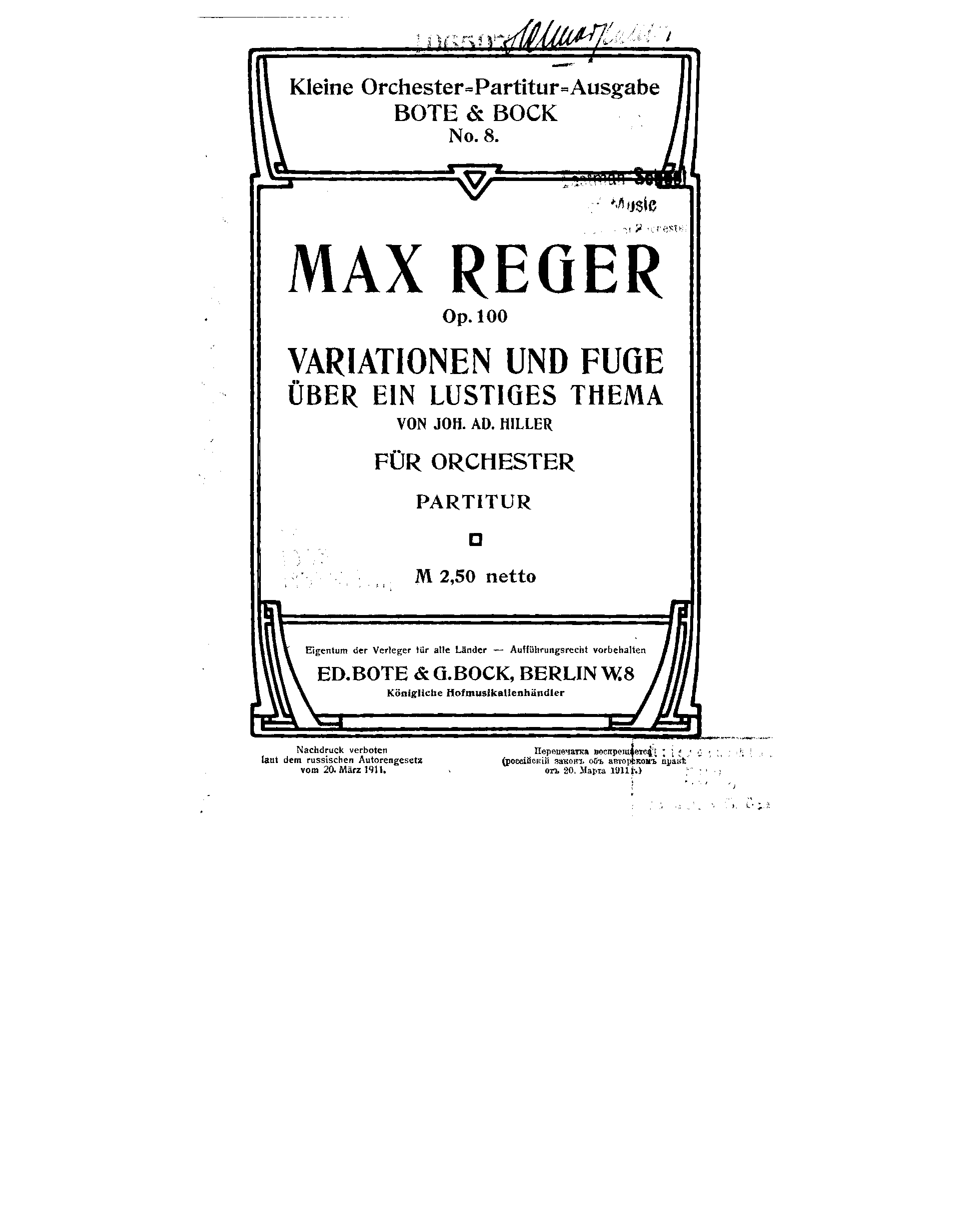 Variations and Fugue on a Theme by J.A. Hiller, Op.100 (Reger, Max)