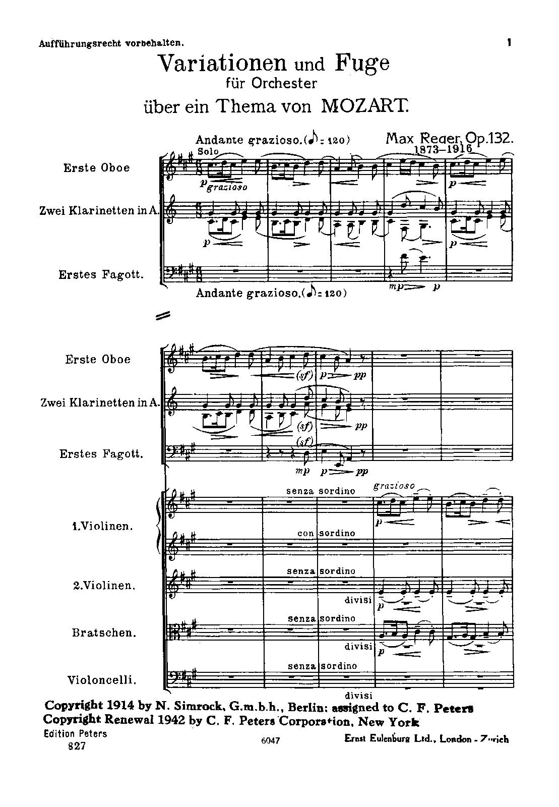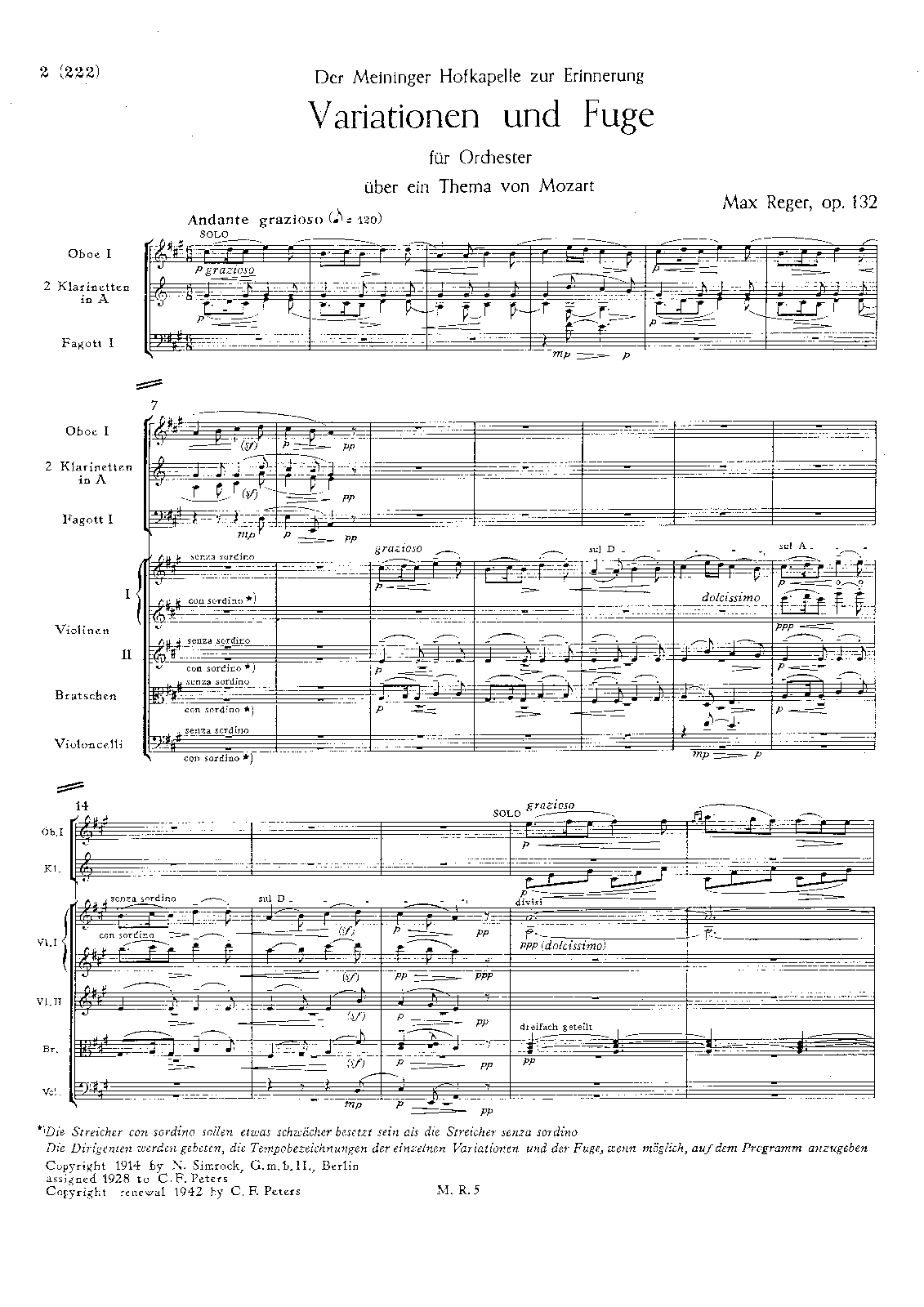 Max Reger: Sämtliche Werke, Band 5: Orchesterwerke V Wiesbaden: Breitkopf und Härtel, 1958. Plate M.R. 5.URTEXT EDITION