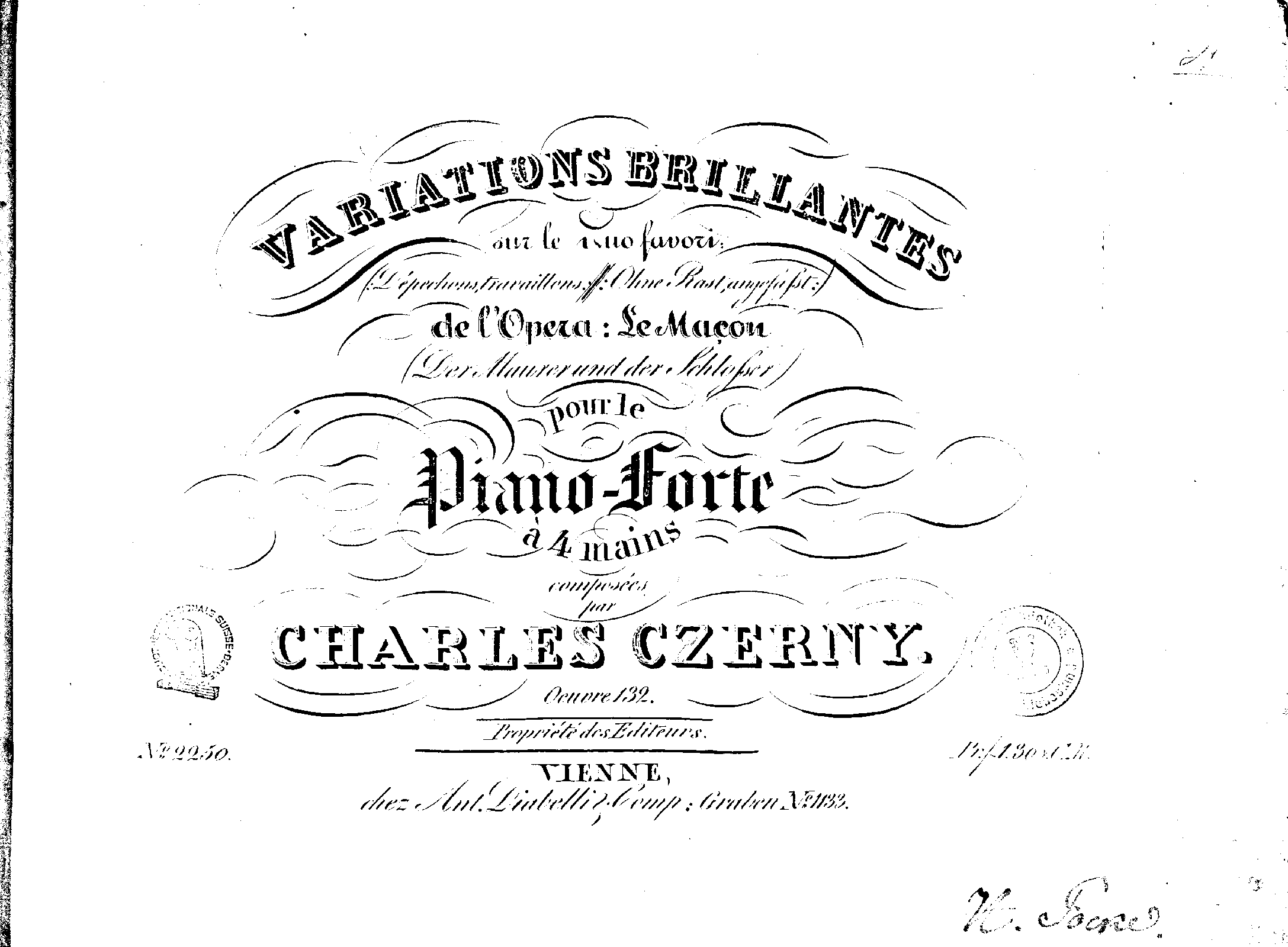 | Alternative. Title | Variations brillantes sur le duo favori : Dépêchons, travaillons (Ohne Rast, angefasst) de l'opéra : Le maçon (Der Maurer und der Schlosser) pour le piano-forte à 4 mains |