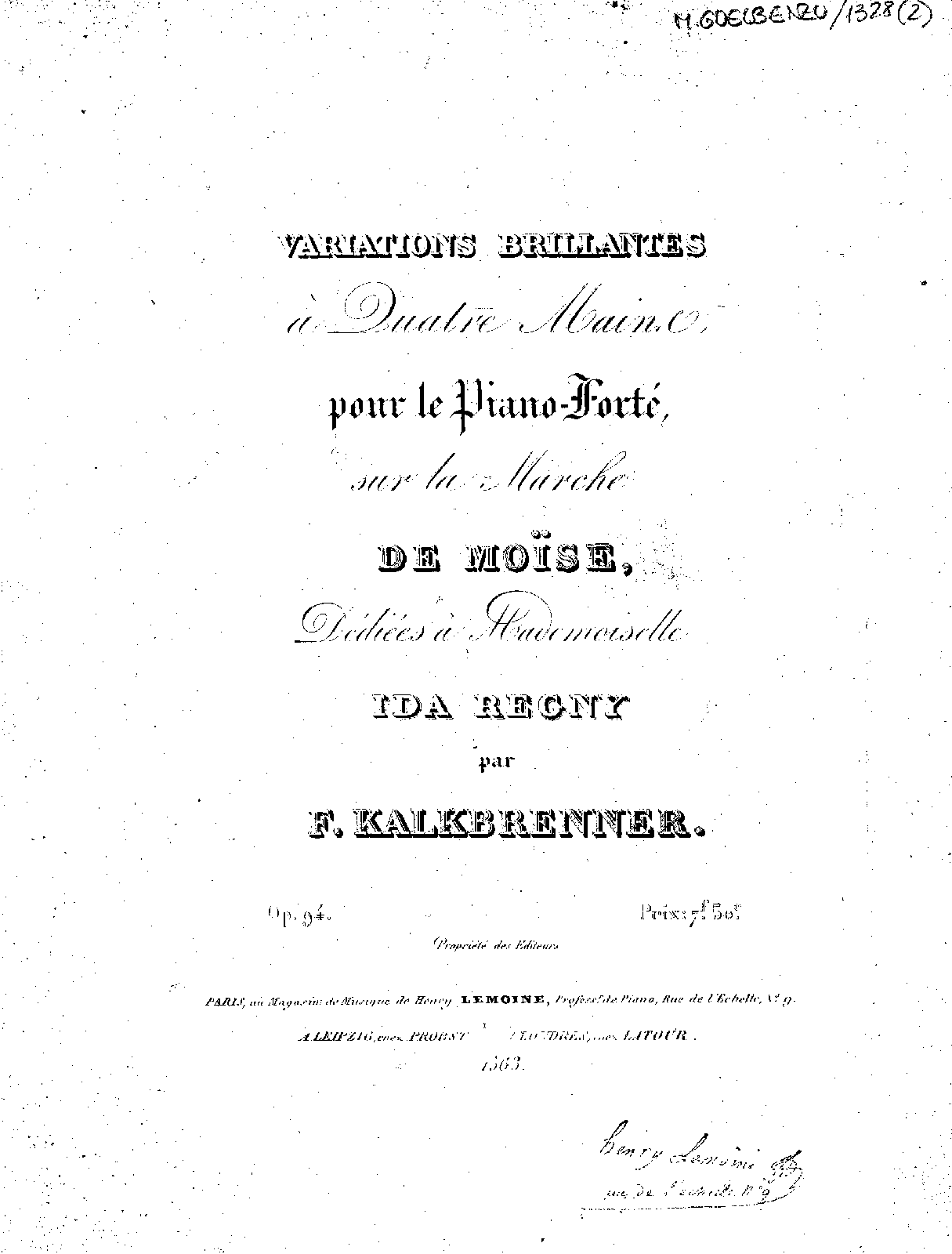 Variations brillantes à quatre maine pour le piano forte sur la marche de Moïse