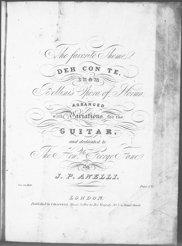 | Work Title | The favorite Theme "Deh Con Te" from Bellini's Opera of "Norma", arranged with Variations for the Guitar |