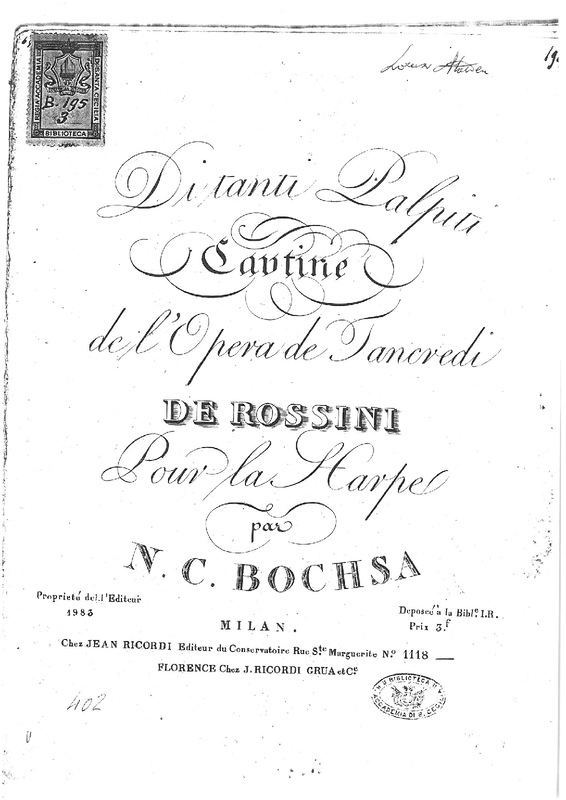 | Alternative. Title | Cavatine de l'opera de Tancredi de Rossini pour la harpe |