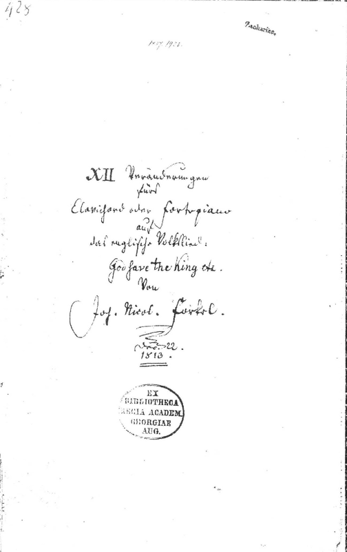| Alternative. Title | 24 Veränderungen fürs Clavichord oder Fortepiano auf das englische Volkslied God save the King. |