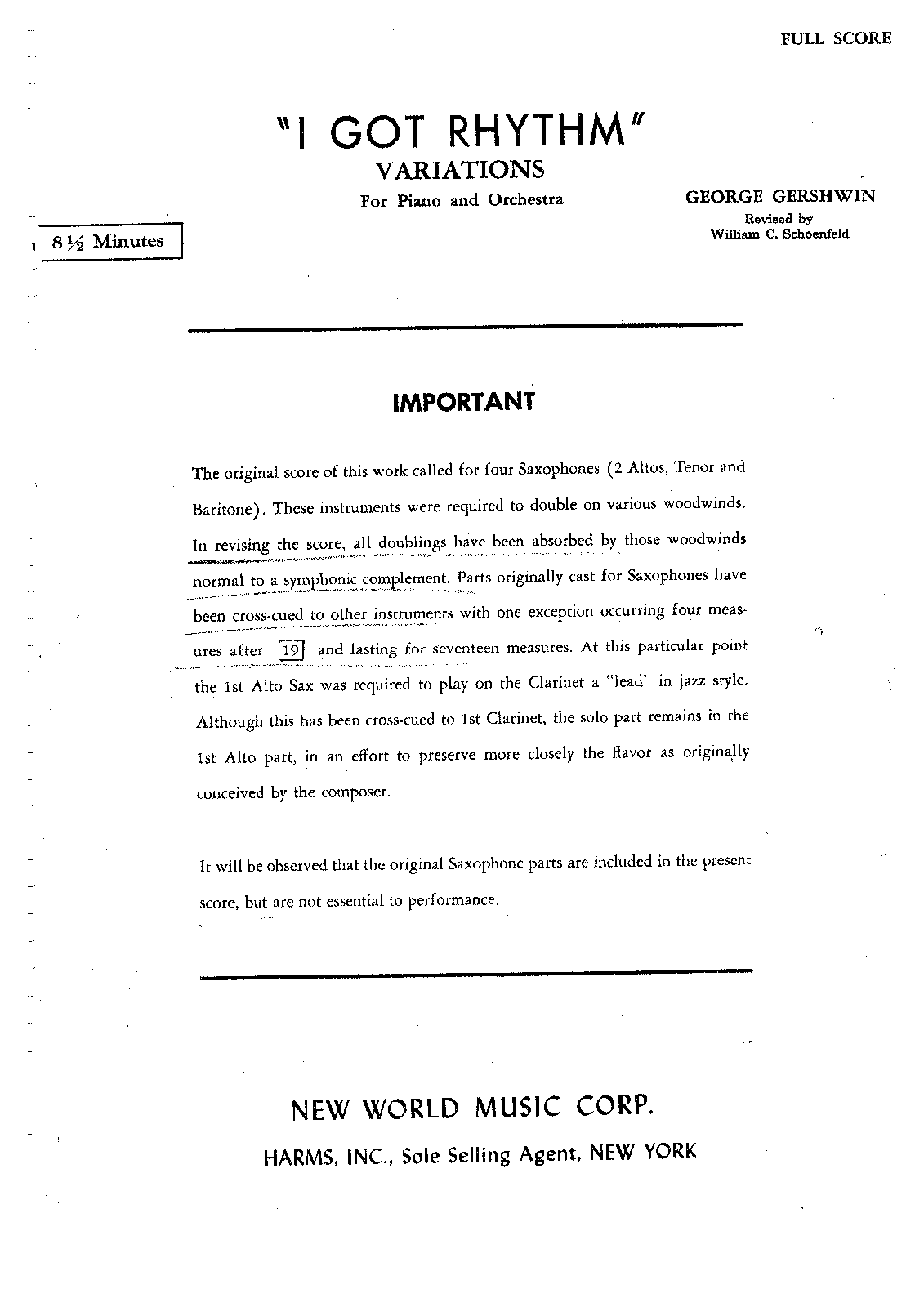 | External Links | Wikipedia article Variations on 'I Got Rhythm' - Scores at Sheet Music Plus |