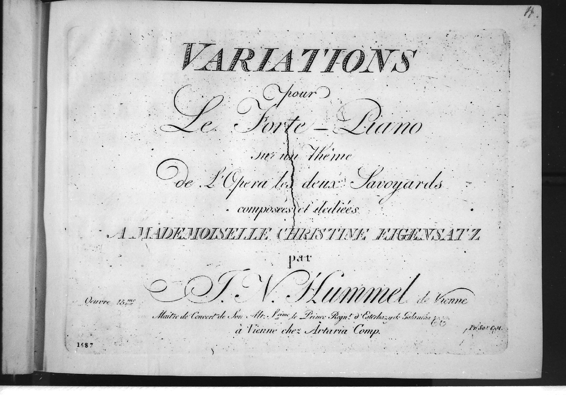 | Work Title | Variations pour le forte-piano sur un thème de l'opéra 'Les deux Savoyards' (de Dalayrac) |