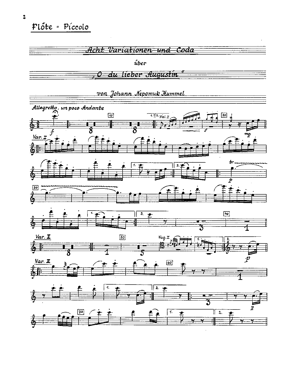| Work Title | Variations for Orchestra from O, du lieber Augustin |