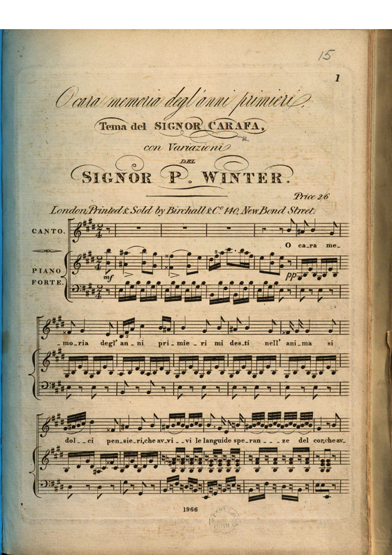 Thema von Caraffa "O cara memoria";"Du süsse Erinn'rung" mit Variazionen