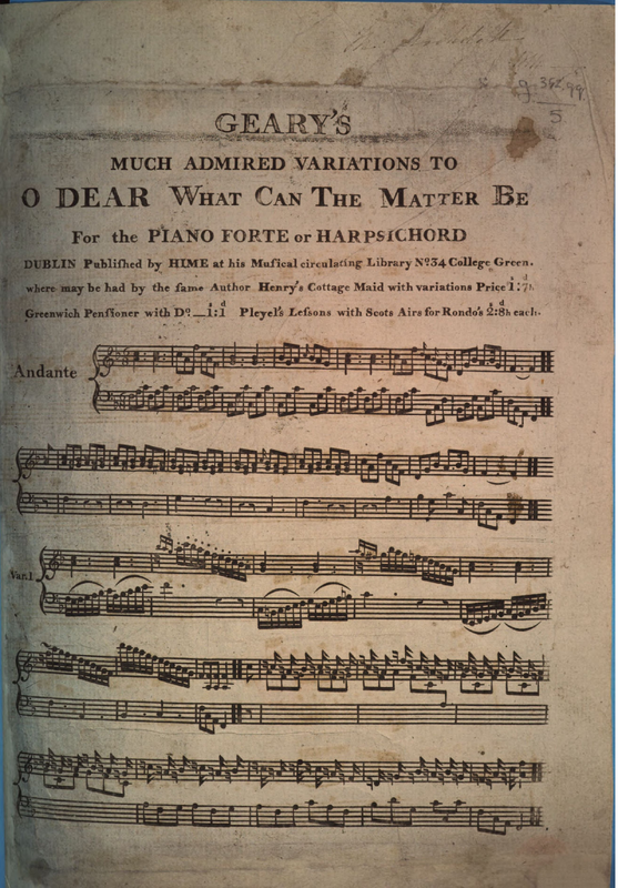 | Alternative. Title | Geary's much admired Variations to O dear what can the Matter be. For the piano forte or harpsichord |