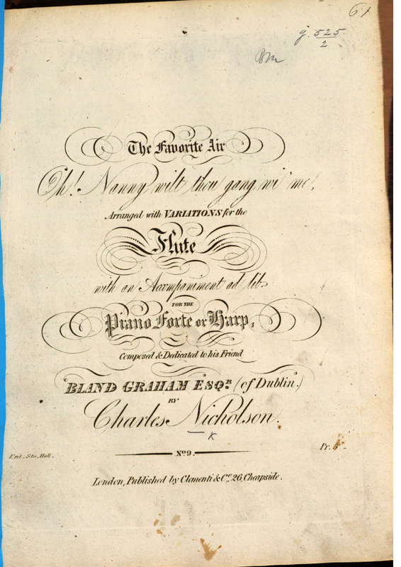 The Favorite Air Oh! Nanny wilt thou gang wi' me, arranged with Variations for the flute with an accompaniment ad lib. for the piano forte or harp