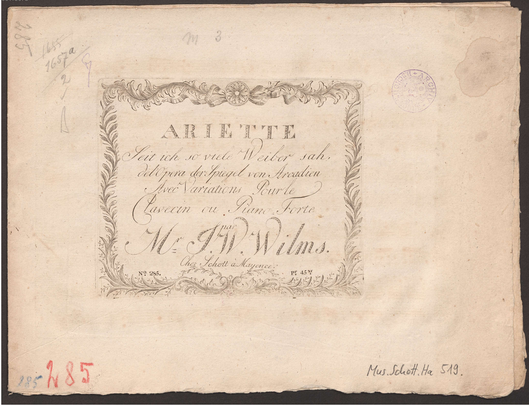 | Alternative. Title | Ariette Seit ich so viele Weiber sah, de l'Opera der Spiegel von Arcadien Avec Variations pour le Clavecin ou Piano-Forte |