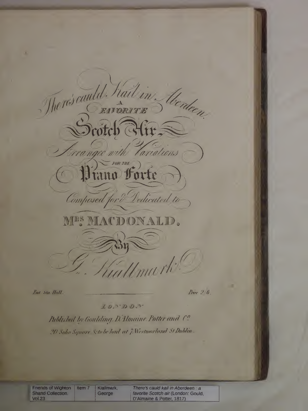 | Alternative. Title | There's cauld Kail in Aberdeen. A favorite Scotch Air, arranged with Variations for the Piano Forte |