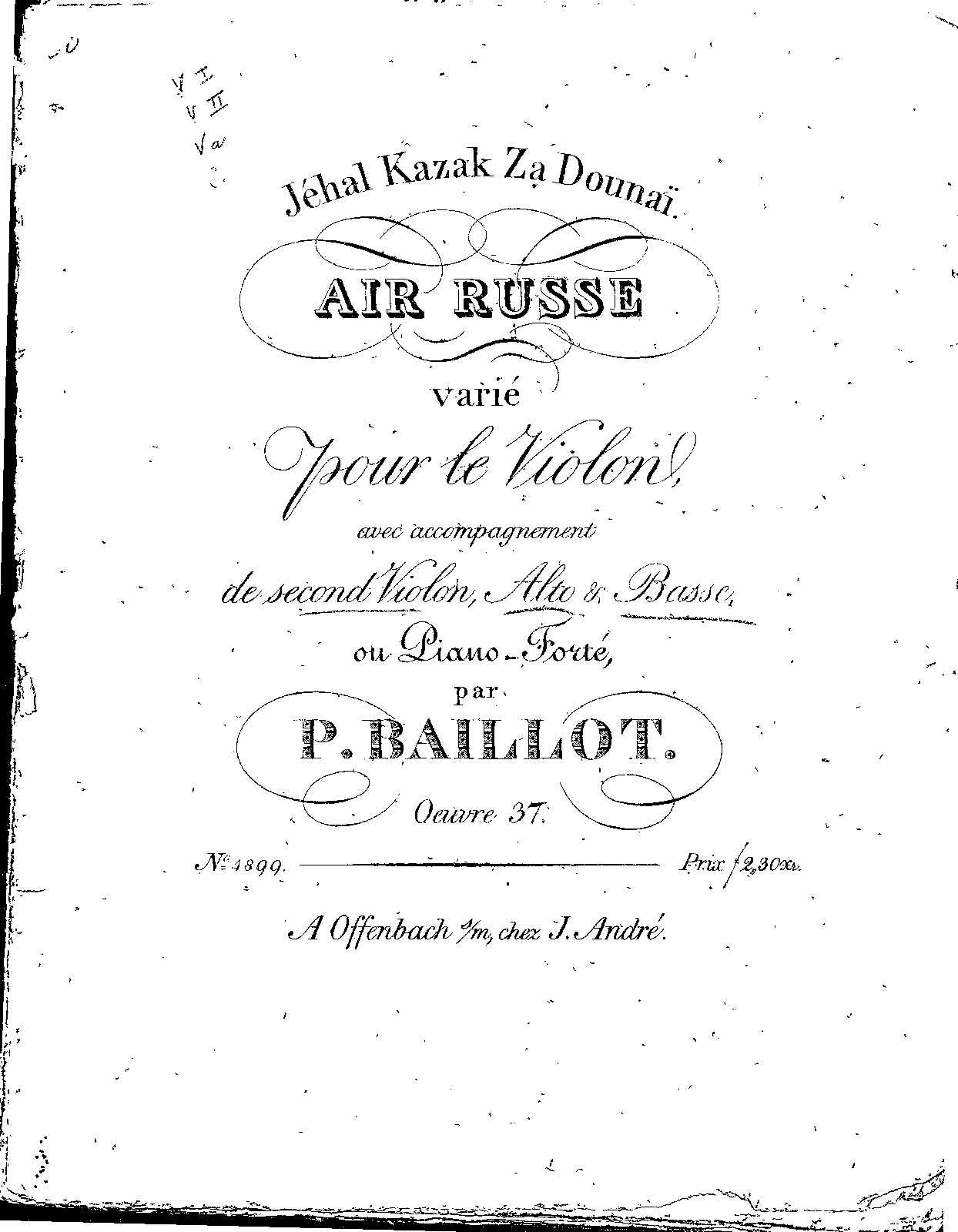 | Alternative. Title | Jéhal Kazak za Dounaï (Yekhal kazak za Dounaï, Ехал казак за Дунай, Un cosaque chevauche au-delà du Danube, Schöne Minka) |