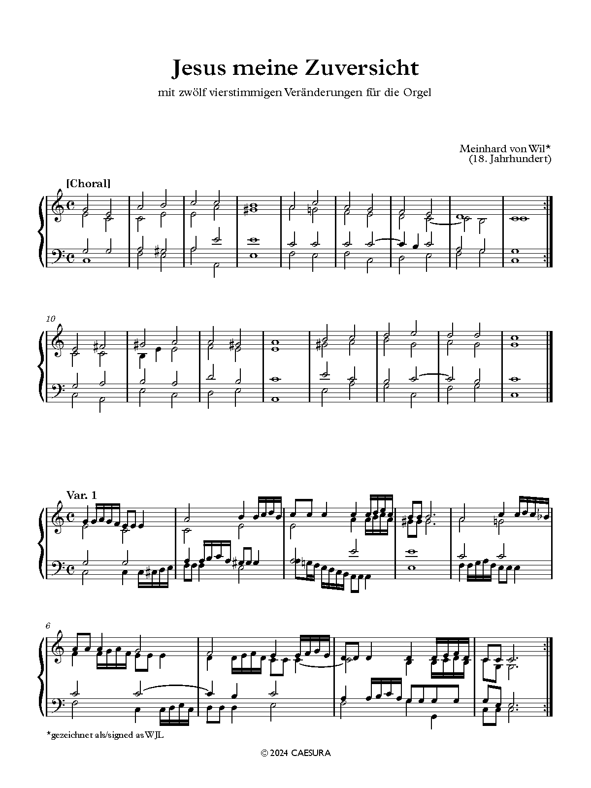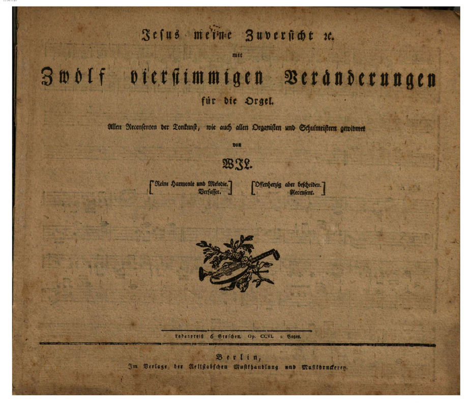 | Alternative. Title | Jesus meine Zuversicht etc. mit zwölf vierstimmigen Veränderungen für die Orgel |