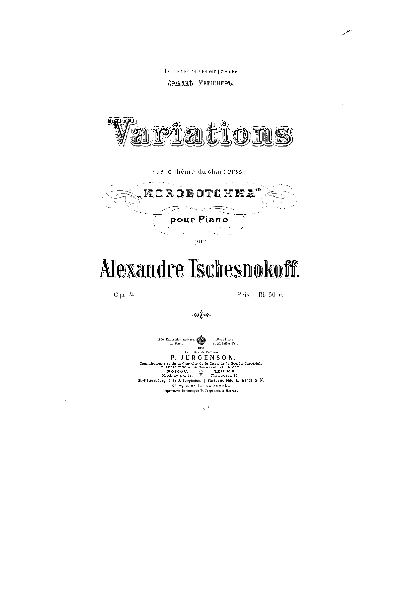 Variations sur le thème du chant russe „Korobotchka“ ; Варіаціи на тему русской народной песни „Коробочка“
