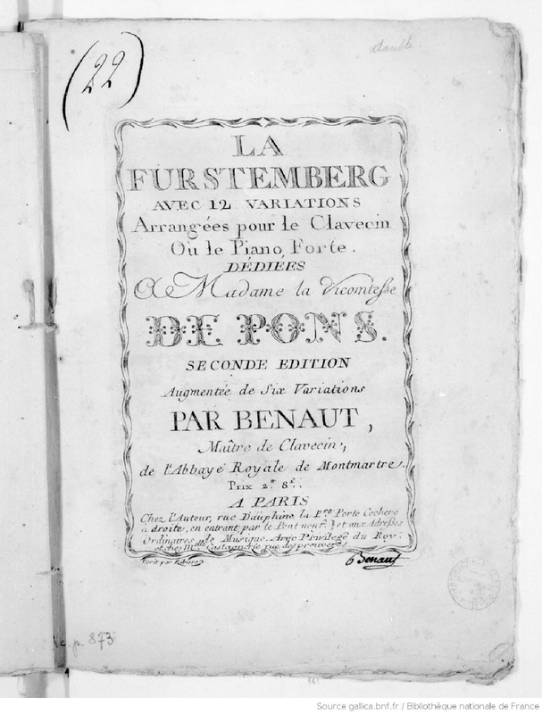 | Alternative. Title | La Furstemberg avec 12 Variations arrangées pour le clavecin ou le piano forte (2e édition augmentée) |