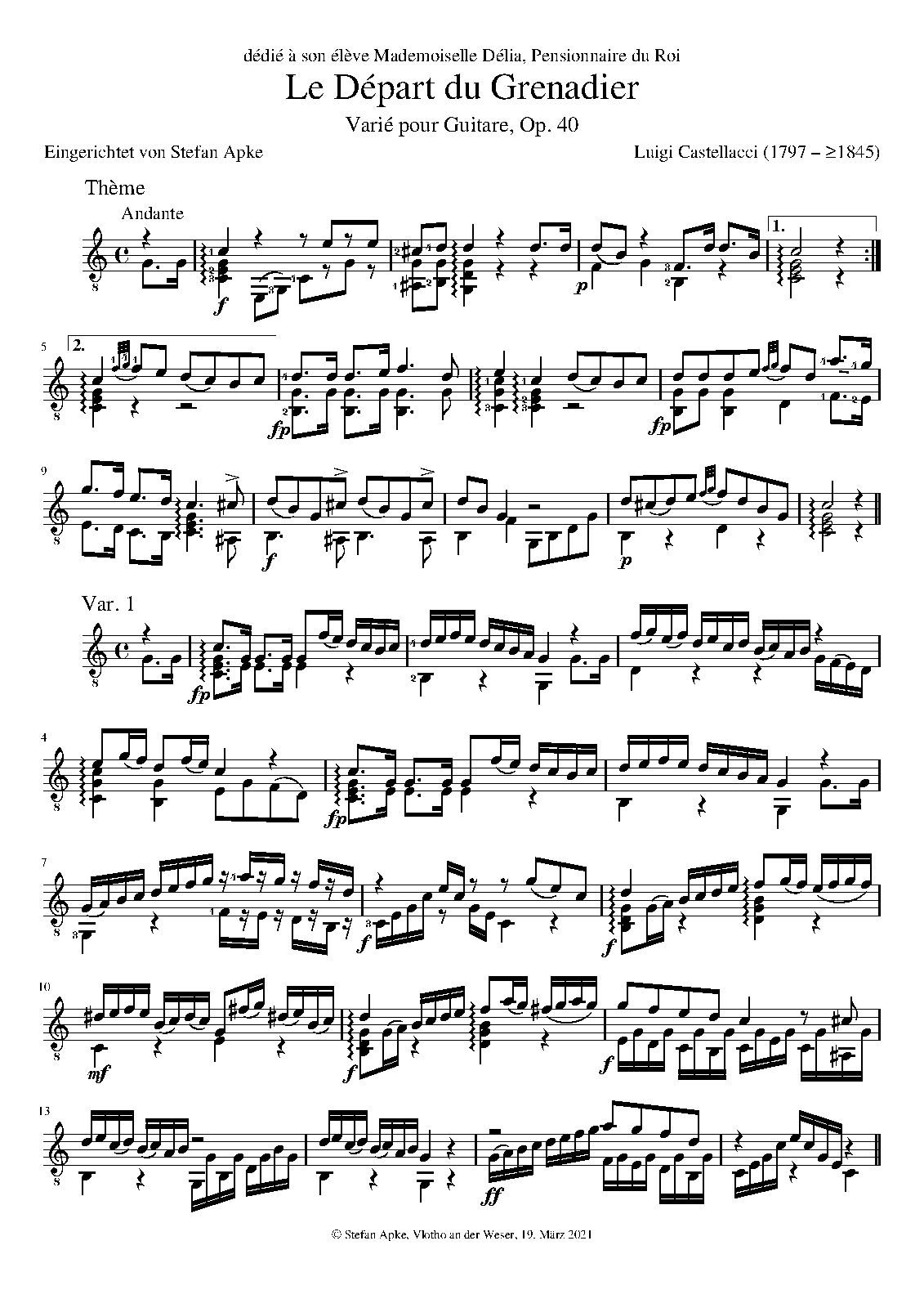 | Work Title | Le Départ du Grenadier; varié pour Guitare |
