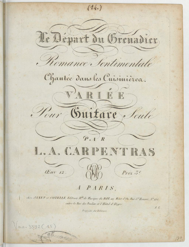 | Work Title | Le départ du Grenadier; Varié pour Guitare Seule |