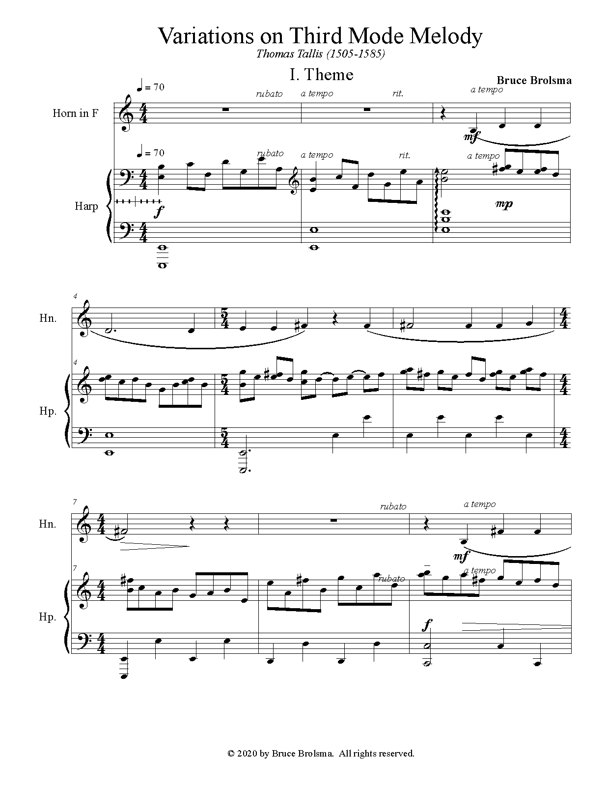 | Genre Categories | Variations; For horn, harp; Scores featuring the horn; |