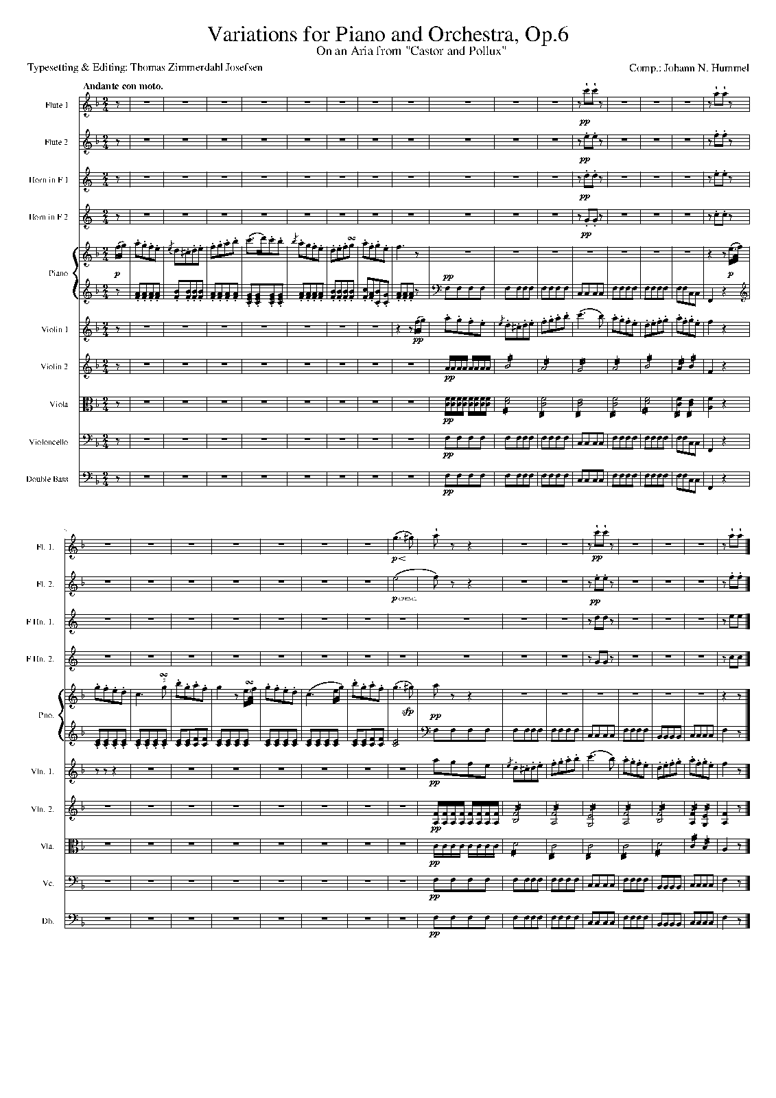 This piece is a bit of an oddity - it does not appear on some of the freely accessible lists of Hummel's works. It is listed as Op.6 in Mark Kroll's "Johann Nepomuk Hummel: A Musician's Life and World" using Joel Sachs' catalogue of Hummel's works as a source (I do not, unfortunately, have access to that currently). If anything, I question the current attribution of Op.6 to the other work catalogued as such here on IMSLP- the set of variations on the same aria for piano is unusually short and unambitious for a work with an Opus number by Hummel.