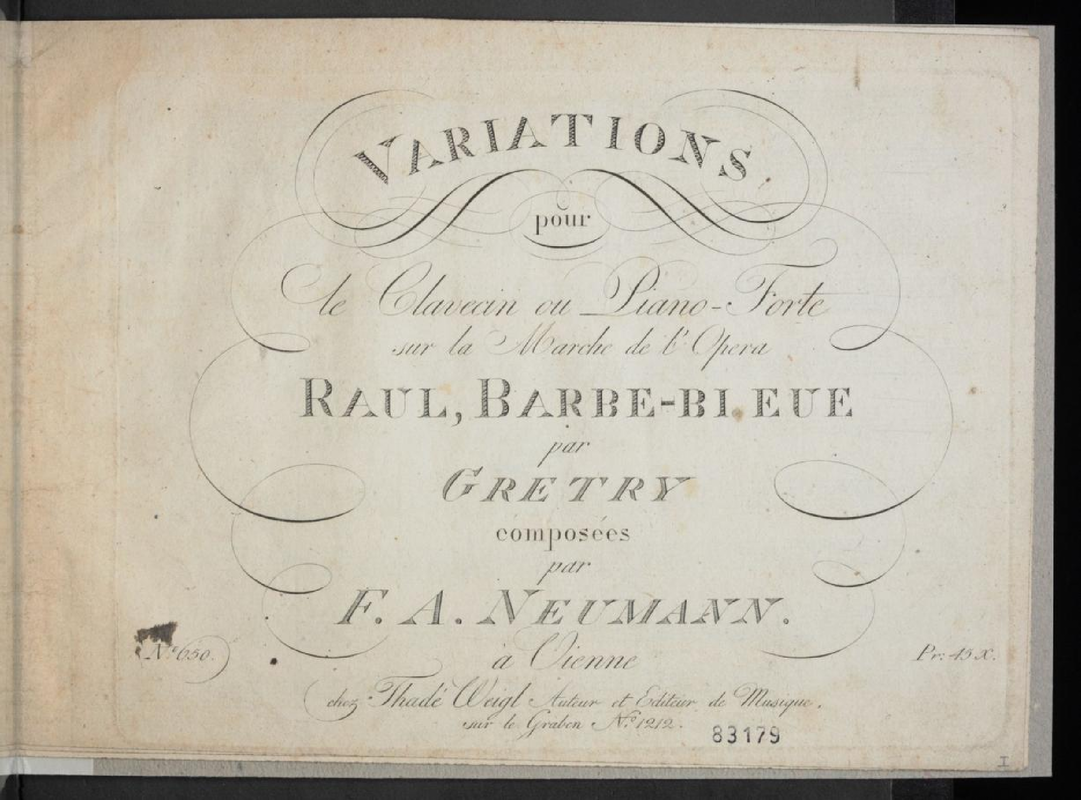 | Alternative. Title | Variations pour le clavecin ou piano-forte sur la Marche de l'Opera Raul, Barbe-Bleu par Grétry |