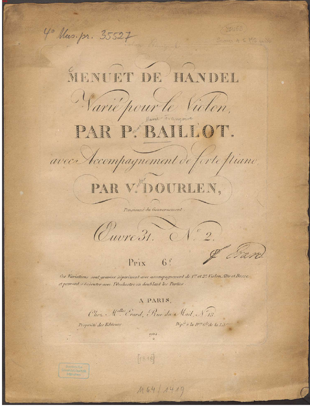 | Alternative. Title | Menuet de Handel varie pour le violon |