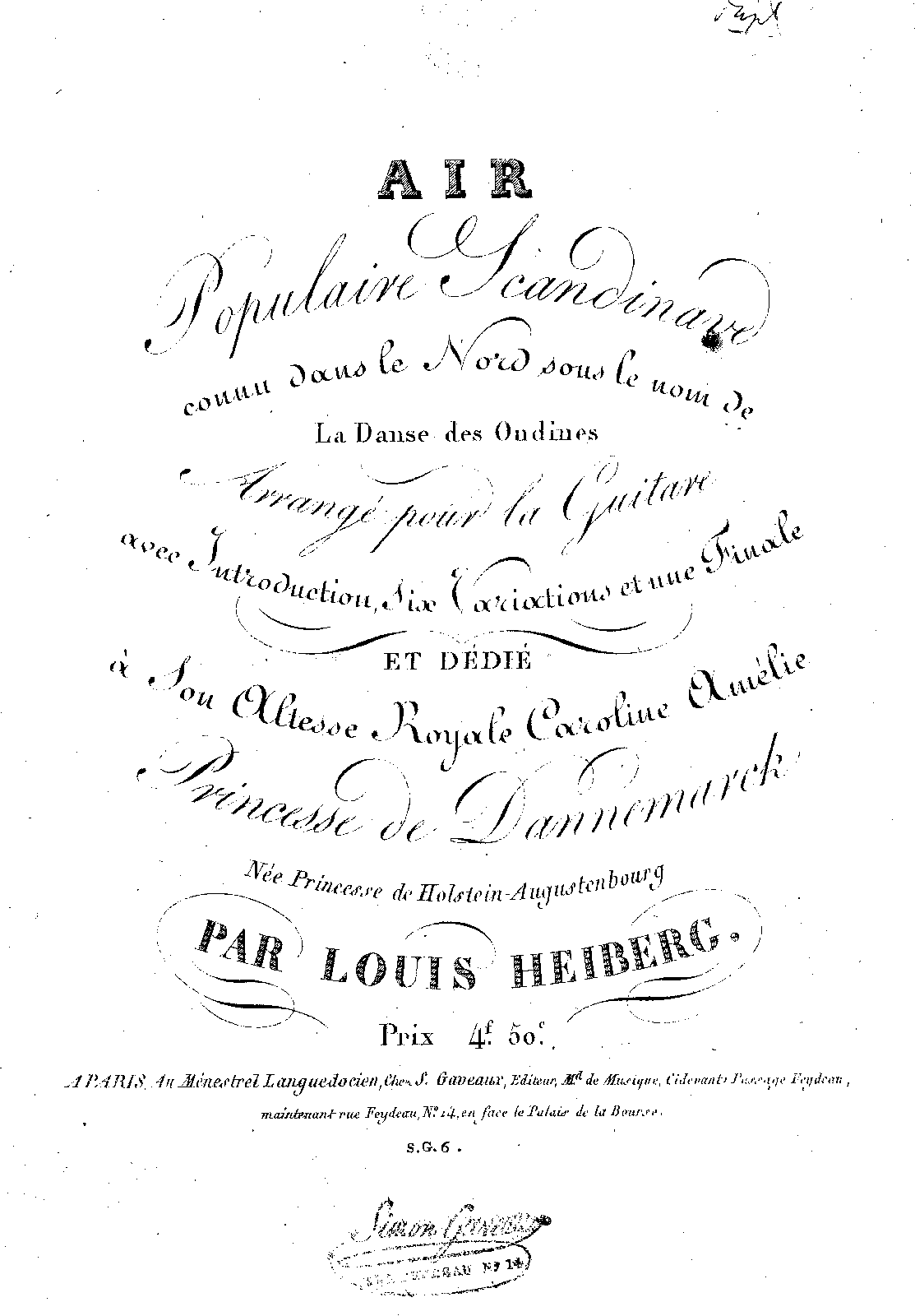 Air Populaire Scandinave connu dans le Nord sous le nome de La Danse des Ondines Arrangé pour la Guitare avec Introduction, Six Variations et une Finale ... par Louis Heiberg