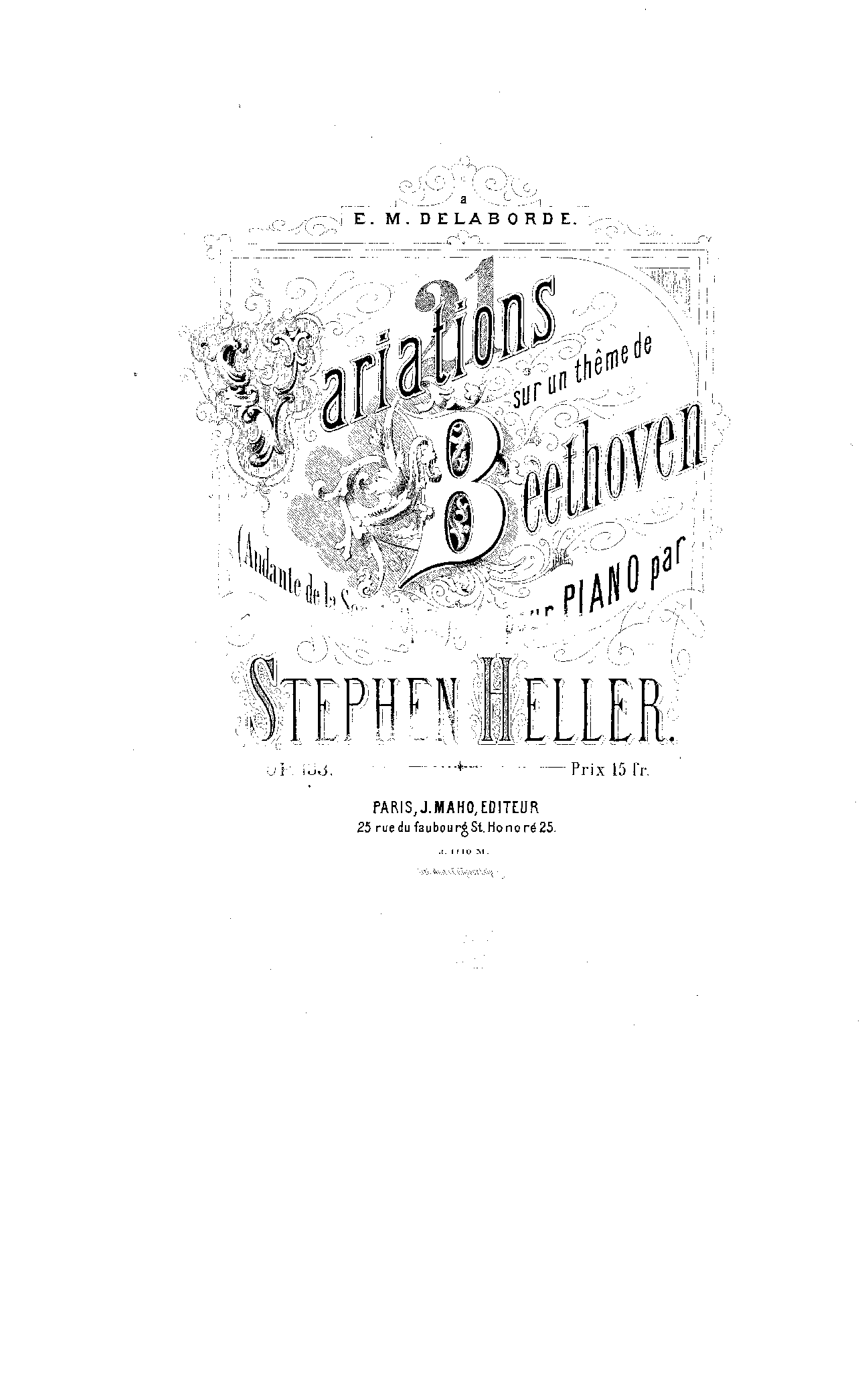 Based on a theme from Beethoven's Appassionata sonata. Published by Robert Lienau (Monatsbericht (1873), p.121); published by Maho at some point before 1877 (perhaps 1872/3; sometimes it is possible to get more accurate dates for Maho publications from French journals...)