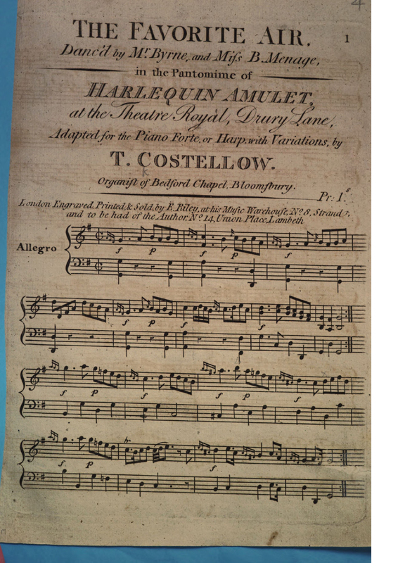 | Alternative. Title | The Favorite Air, Danc'd by Mr. Byrne, and Miss B. Menage, in the Pantomime Harlequin Amulet, at the Theatre Royal, Drury Lane, Adapted for the Piano Forte, or Harp, with Variations |