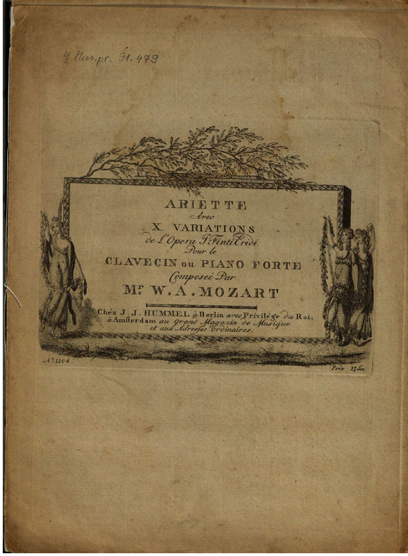 Ariette avec X Variations de l'Opera I Finti Eredi pour le Clavecin ou Piano Forte composee par Mr. W. A. Mozart [sic]