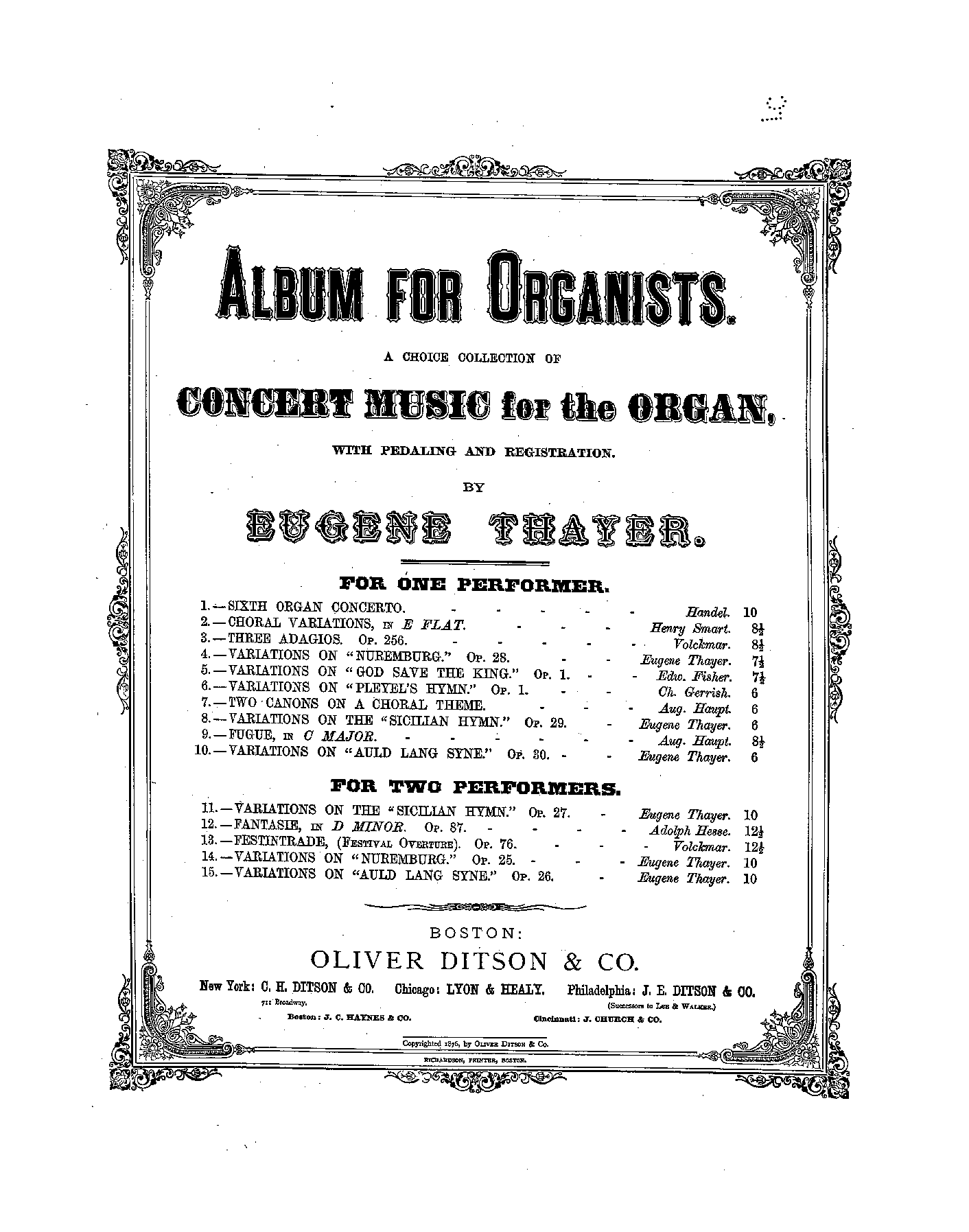 | Genre Categories | Variations; For organ; Scores featuring the organ; For 1 player |