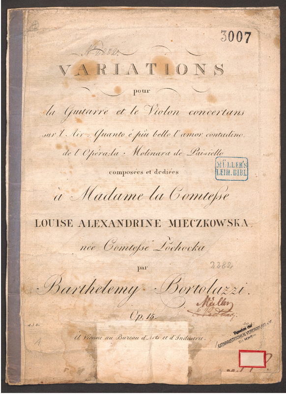 | Alternative. Title | Variations pour la Guitarre et le Violon concertans sur l'air "Quanto é più bello l'amor contadino" de l'opéra: La molinara de Paisiello |