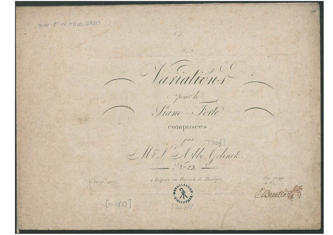 | Alternative. Title | 12 Variations pour le Clavecin ou Piano-Forte sur le Trio / Pria che l'Impegno / tiré del Opera l'Amor Marinaro |