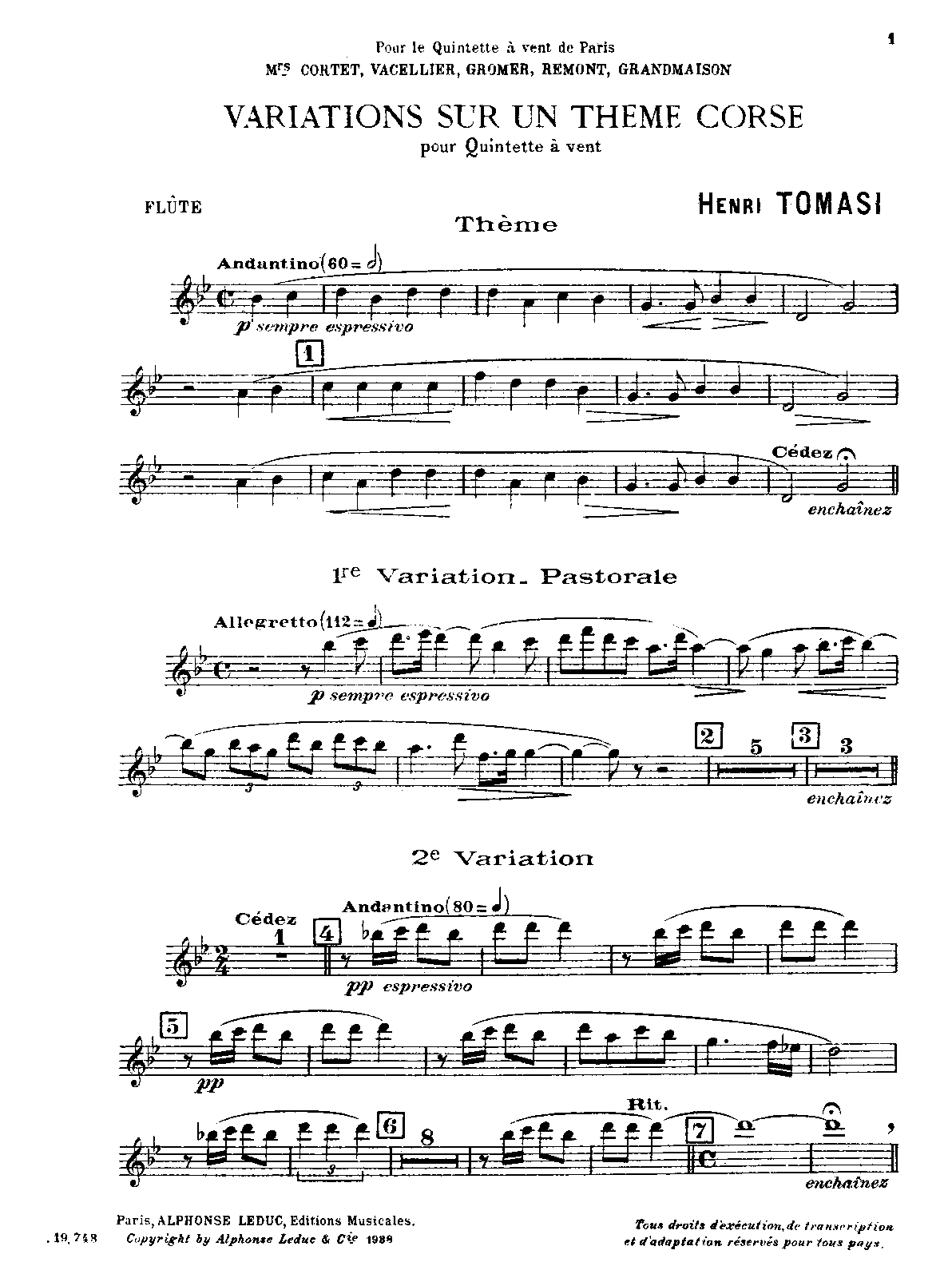 | Genre Categories | Variations; For flute, oboe, clarinet, bassoon, horn; Scores featuring the flute; |
