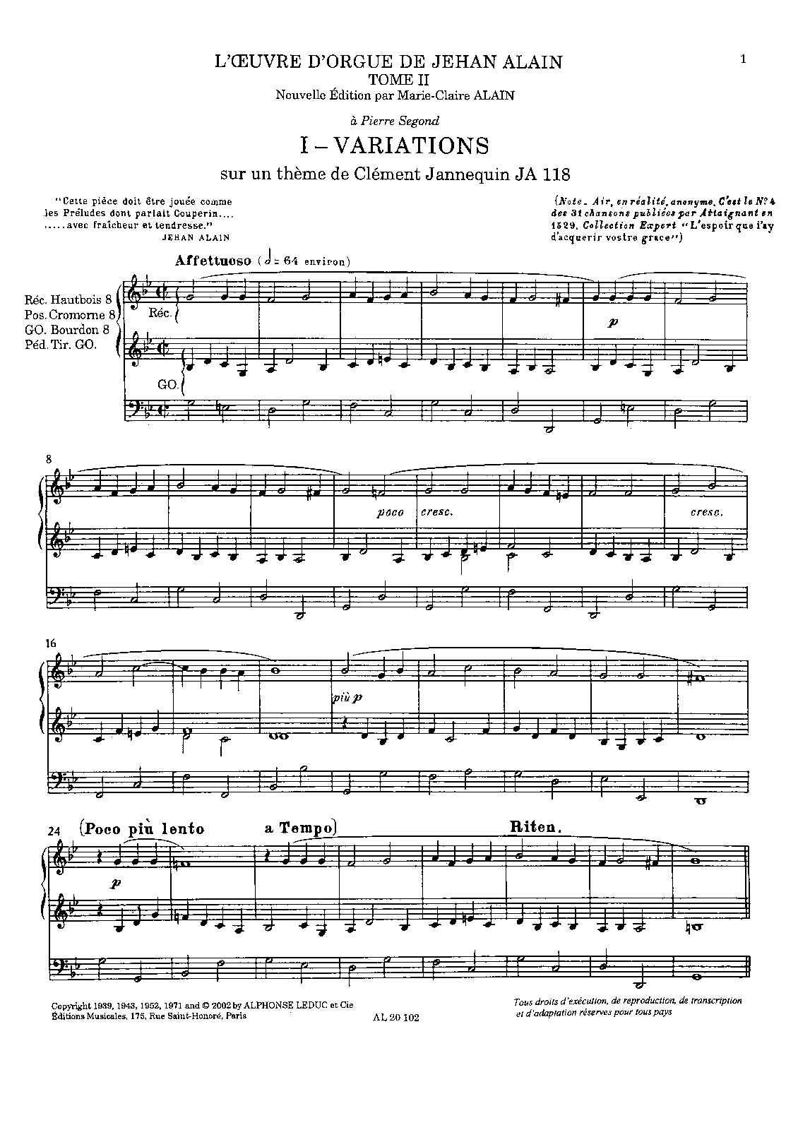 | Genre Categories | Variations; For organ; Scores featuring the organ; |