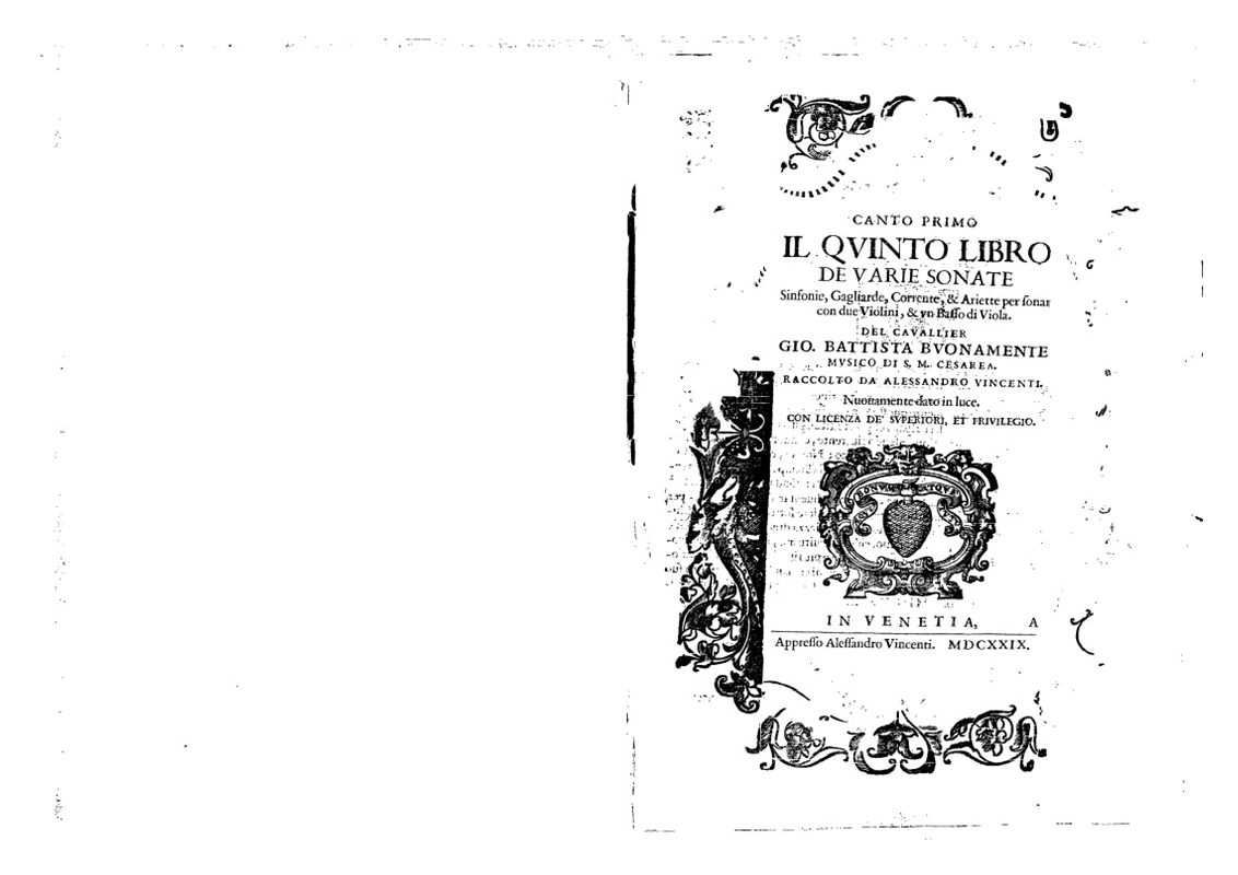 | Alternative. Title | Il quinto libro de Varie Sonate, Sinfonie, Gagliarde, Corrente & Ariette Per Sonar con due Violini, & vn Basso di Viola |