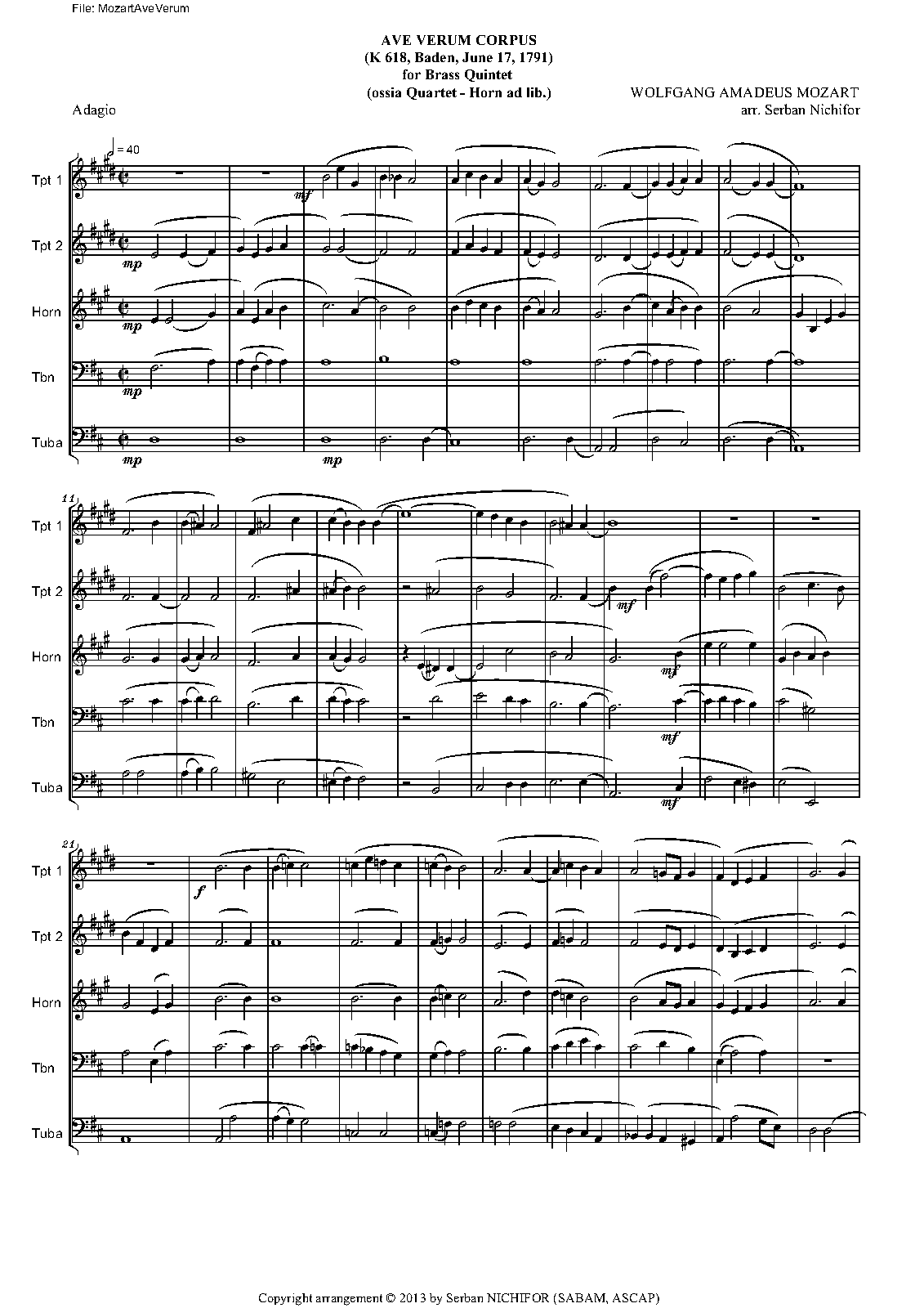 - Mozart: Ave verum corpus, K.618 (brass ensemble)