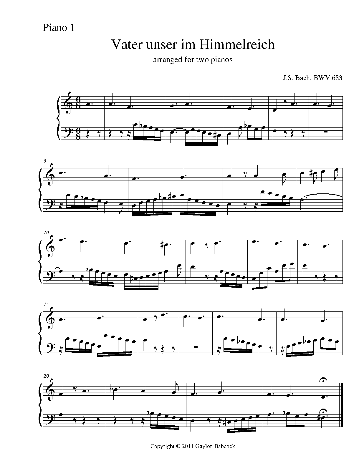 Extra Information Vater unser im Himmelreich, BWV 683a