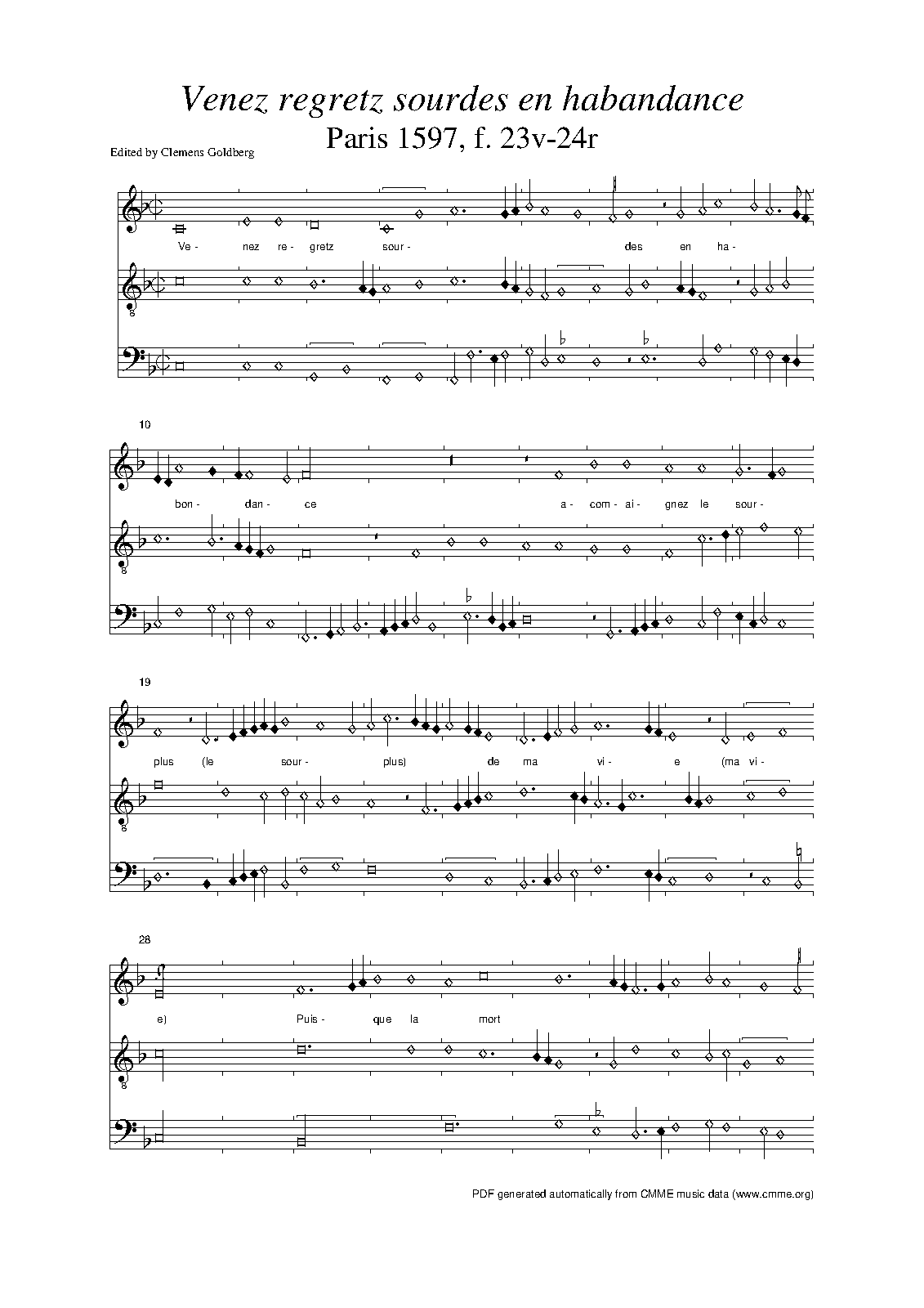 | Work Title | Venez regretz sourdes en habondar ce acompaigner |