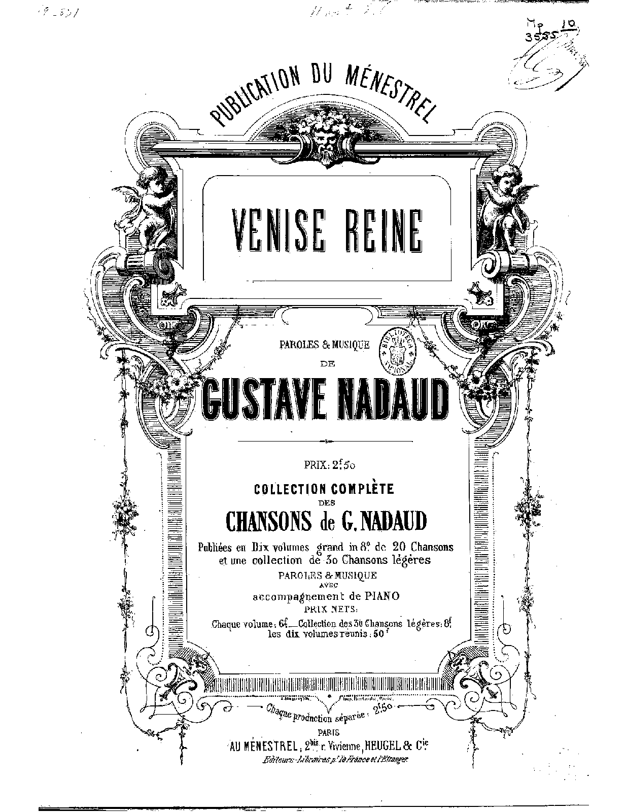 | Genre Categories | Chansons; Songs; For voice, piano; |