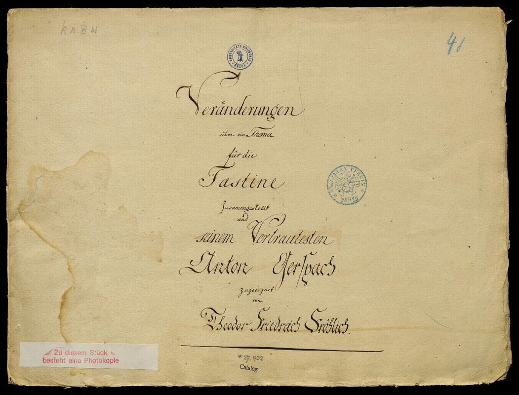 | Work Title | Veränderungen über ein Thema für die Tastine |