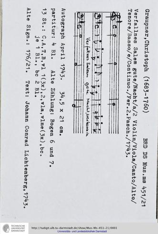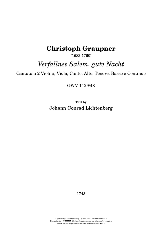 | Work Title | Verfallnes Salem gute Nacht |