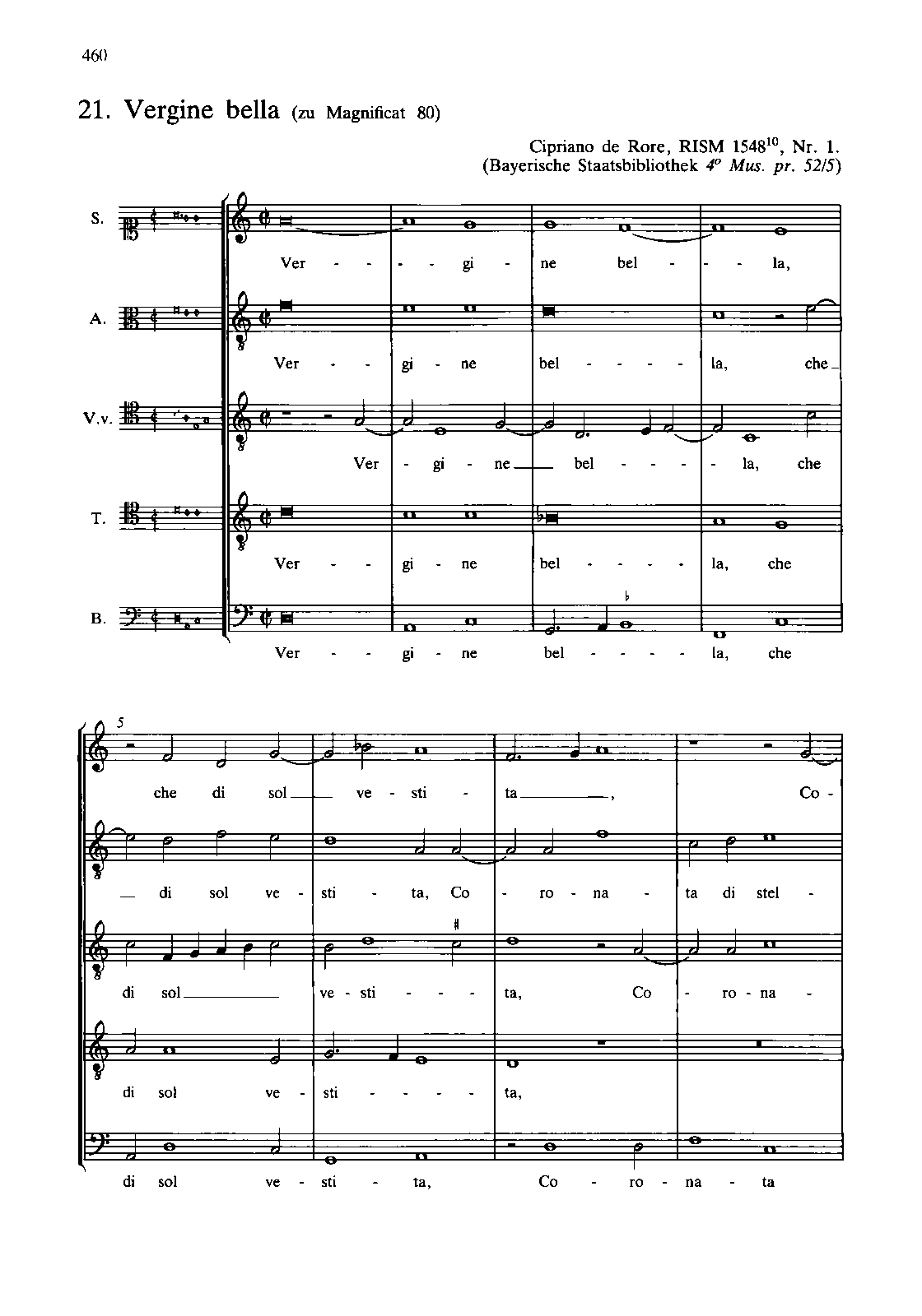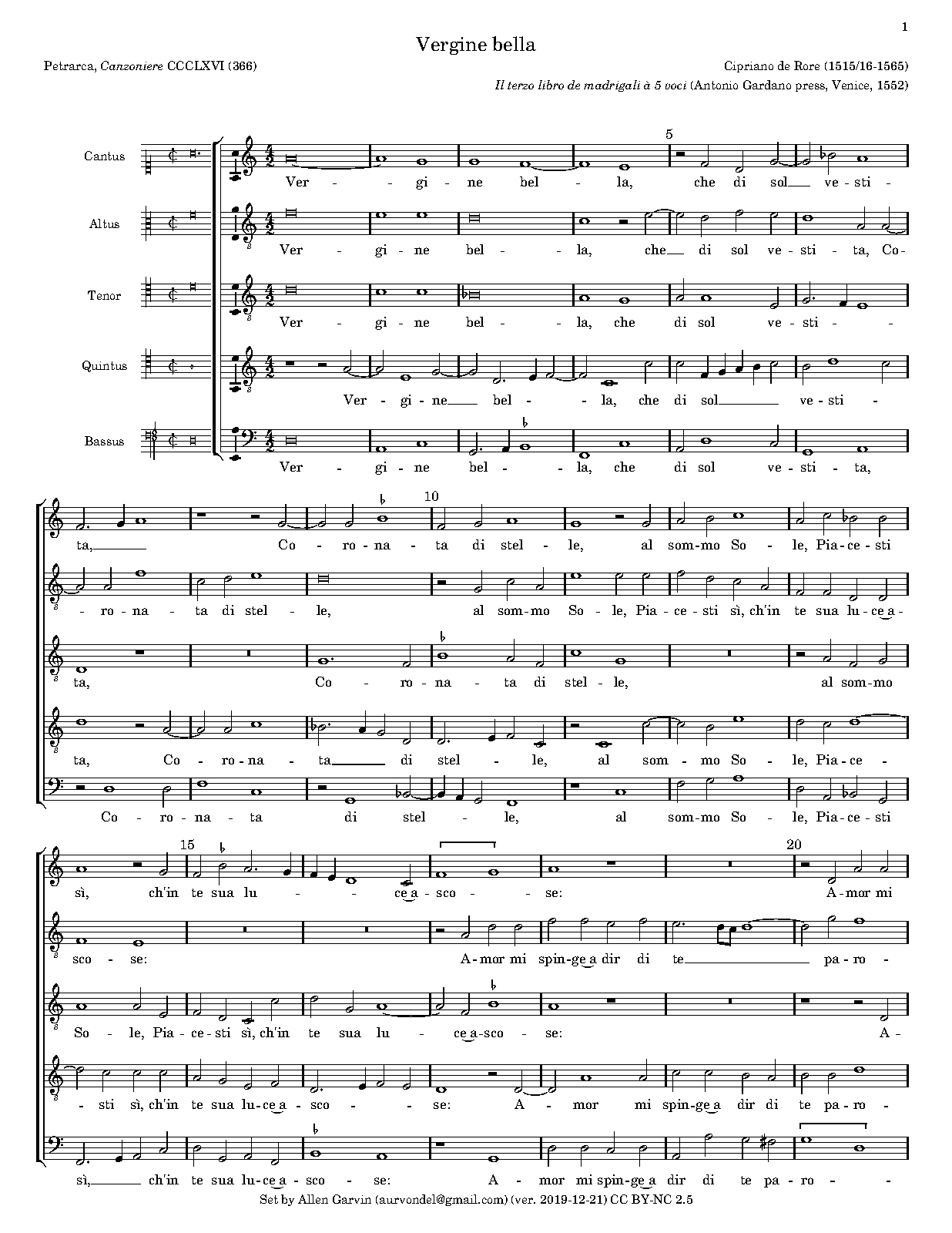 Though RISM, in 2 different entries, says this madrigal has multiple parts, the 1560 collection (linked above) does not say "2a pars" etc, next to the consecutive parts, and treats them as separate madrigals, though the subtitle of the collection says "dove si contengono le vergini", in other words it contains "the virgins". This indicates that Bassani at least saw them as a group, if not one work.