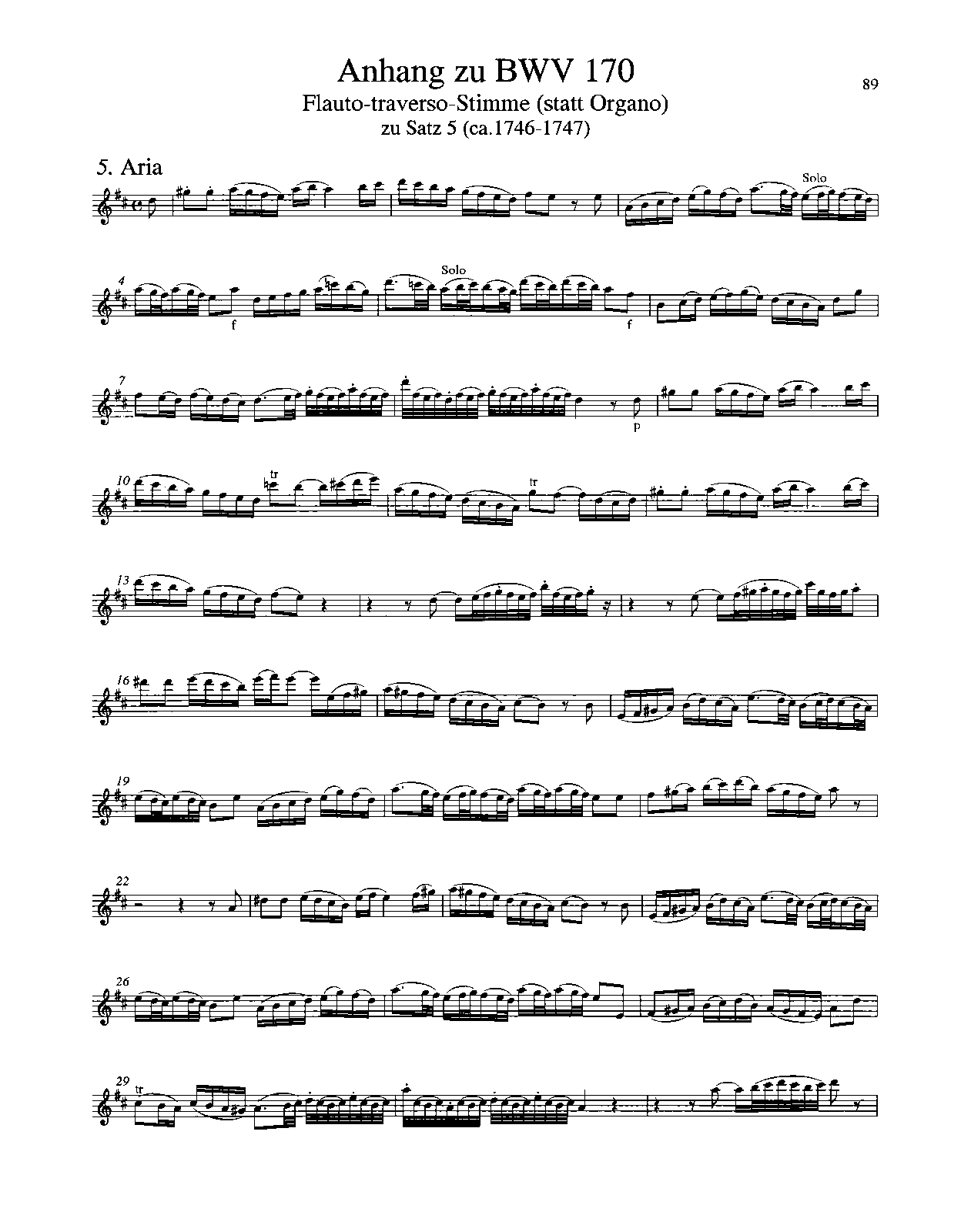 Extra Information The organ obbligato left hand was supplemented by a flute traverso (rewritten and transposed) in the 1746-47 Performance for flute and continuo in the organ line.