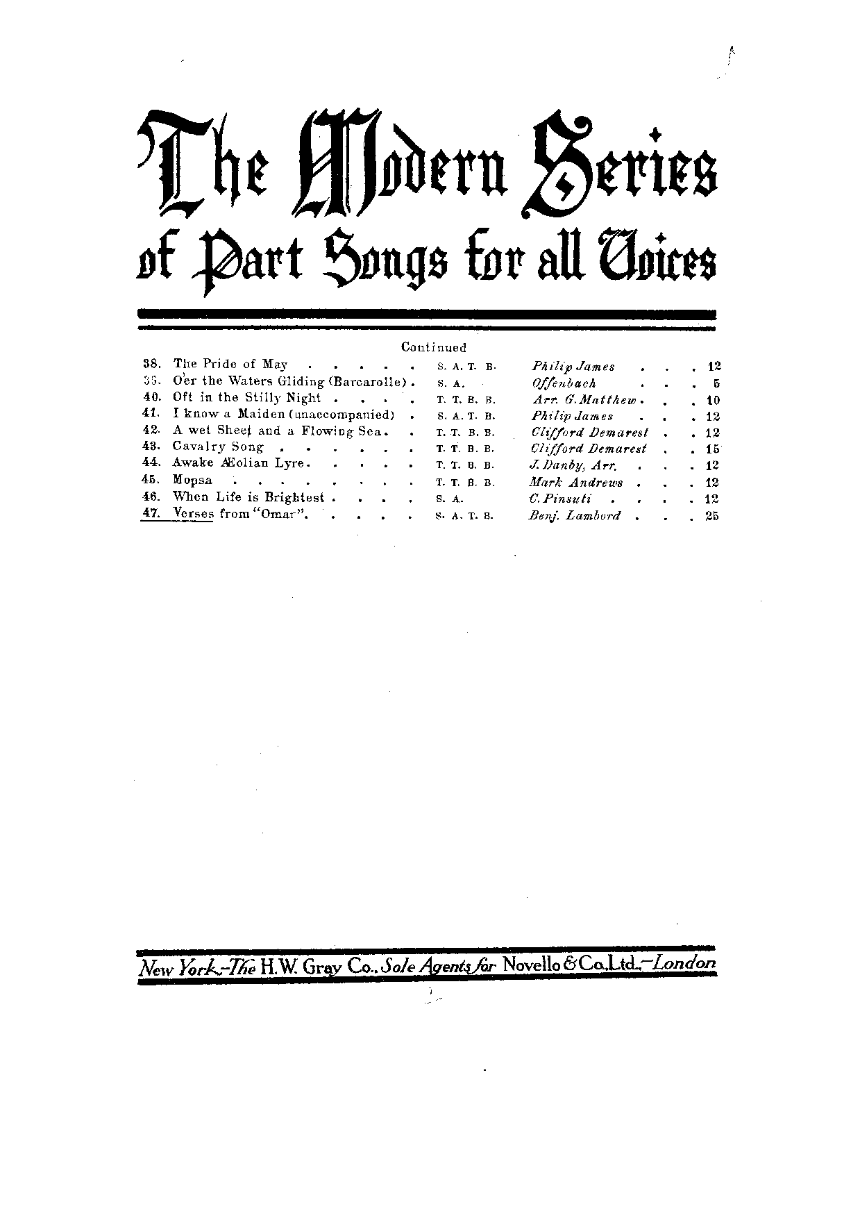 | Genre Categories | Secular choruses; Choruses; For mixed chorus, orchestra; |